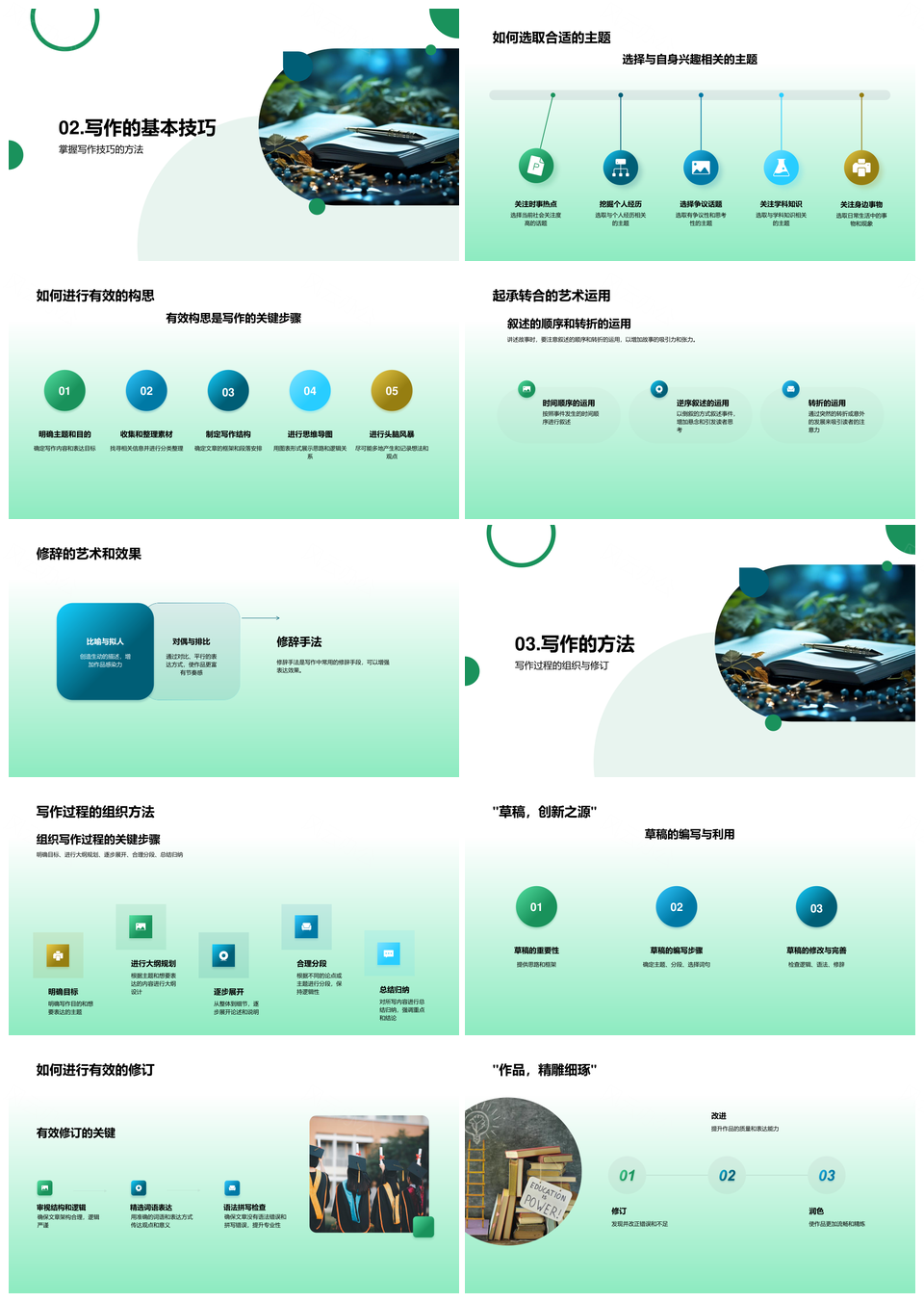 写作技巧选题构思起承转合修辞草稿策略PPT模板推荐