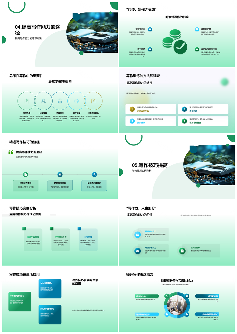 提升作文水平写作技巧语文素养构思布局汇报PPT模板