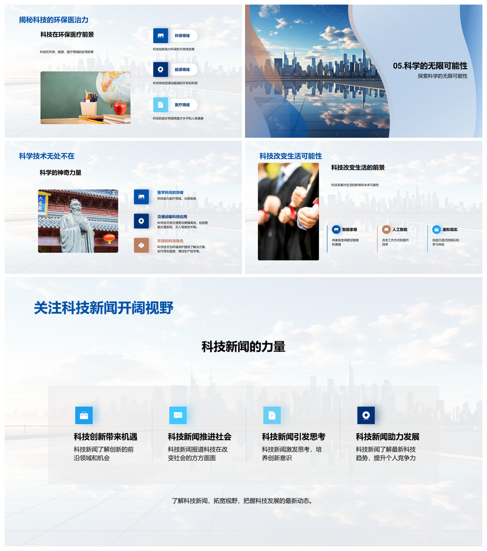 风云办公提供的科技之路发展历程与未来城市景观PPT模板,下载格式为pptx,一共23页,作品中文字及图均可以修改和编辑,图片更改请在作品中右键图片并更换,文字修改请直接点击文字进行修改。