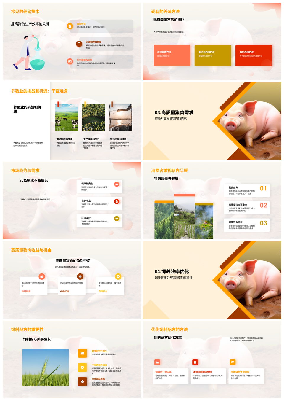 风云办公提供的高效养猪技术优化生长周期提升品质PPT模板,下载格式为pptx,一共27页,作品中文字及图均可以修改和编辑,图片更改请在作品中右键图片并更换,文字修改请直接点击文字进行修改。