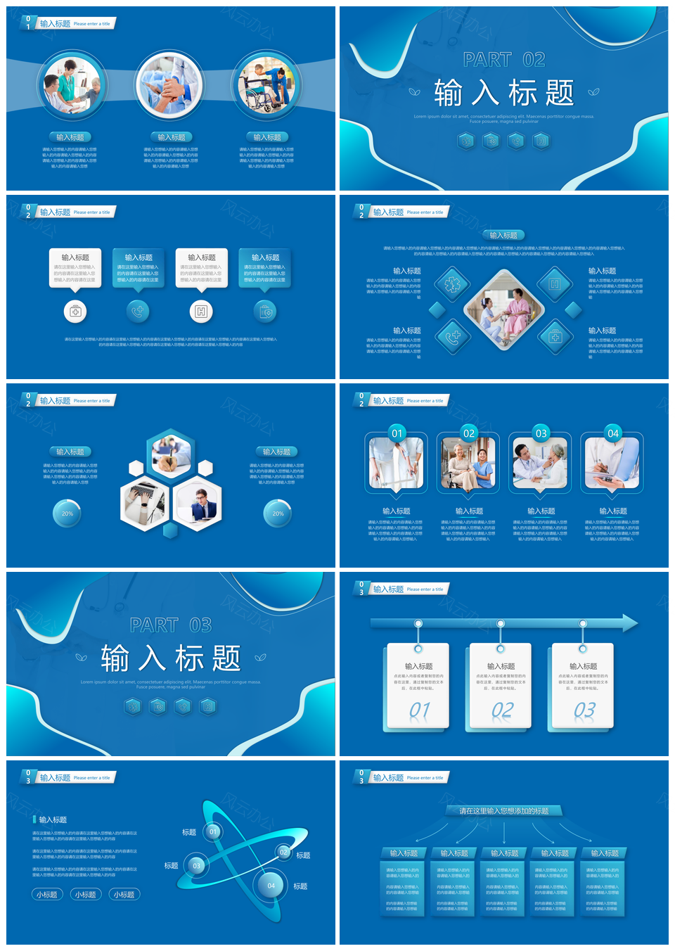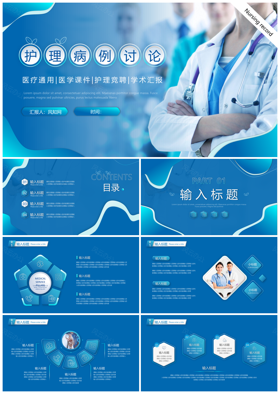 风云办公提供的蓝色微粒体风医疗护理PPT合集,下载格式为pptx,一共24页,作品中文字及图均可以修改和编辑,图片更改请在作品中右键图片并更换,文字修改请直接点击文字进行修改。