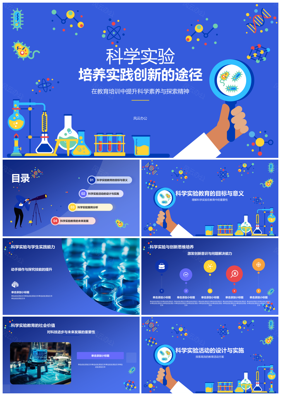 这是一张科学实验动手实践创新思维探索教育培训PPT模板,包含科学实验、动手实践、创新思维、探索教育、培训等主题内容,也可用作科学实验动手实践创新思维、动手实践创新思维探索教育、科学实验动手实践创新、科学实验创新思维探索、创新思维探索教育培训、动手实践创新思维探索、创新思维探索教育培训、科学实验教育培训探索、科学实验探索教育培训、动手实践探索教育培训、科学实验动手实践、动手实践创新思维、创新思维探索教育、科学实验教育培训、教育培训探索实践等PPT场景使用。 风云办公提供的科学实验动手实践创新思维探索教育培训PPT模板,下载格式为pptx,一共20页,作品中文字及图均可以修改和编辑,图片更改请在作品中右键图片并更换,文字修改请直接点击文字进行修改。