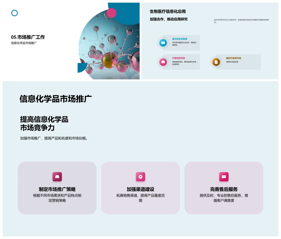 风云办公提供的生物医疗信息化学品应用研究进展优势PPT模板,下载格式为pptx,一共21页,作品中文字及图均可以修改和编辑,图片更改请在作品中右键图片并更换,文字修改请直接点击文字进行修改。