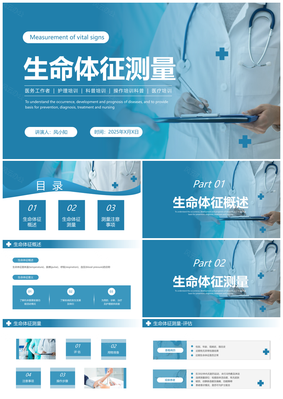 风云办公提供的2025蓝色生命体征测量医疗培训教育课件,下载格式为pptx,一共21页,作品中文字及图均可以修改和编辑,图片更改请在作品中右键图片并更换,文字修改请直接点击文字进行修改。