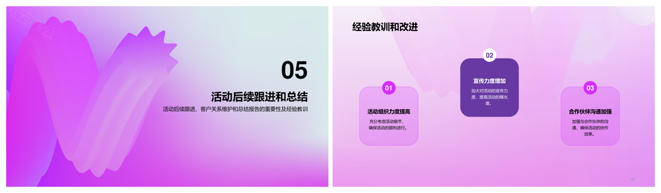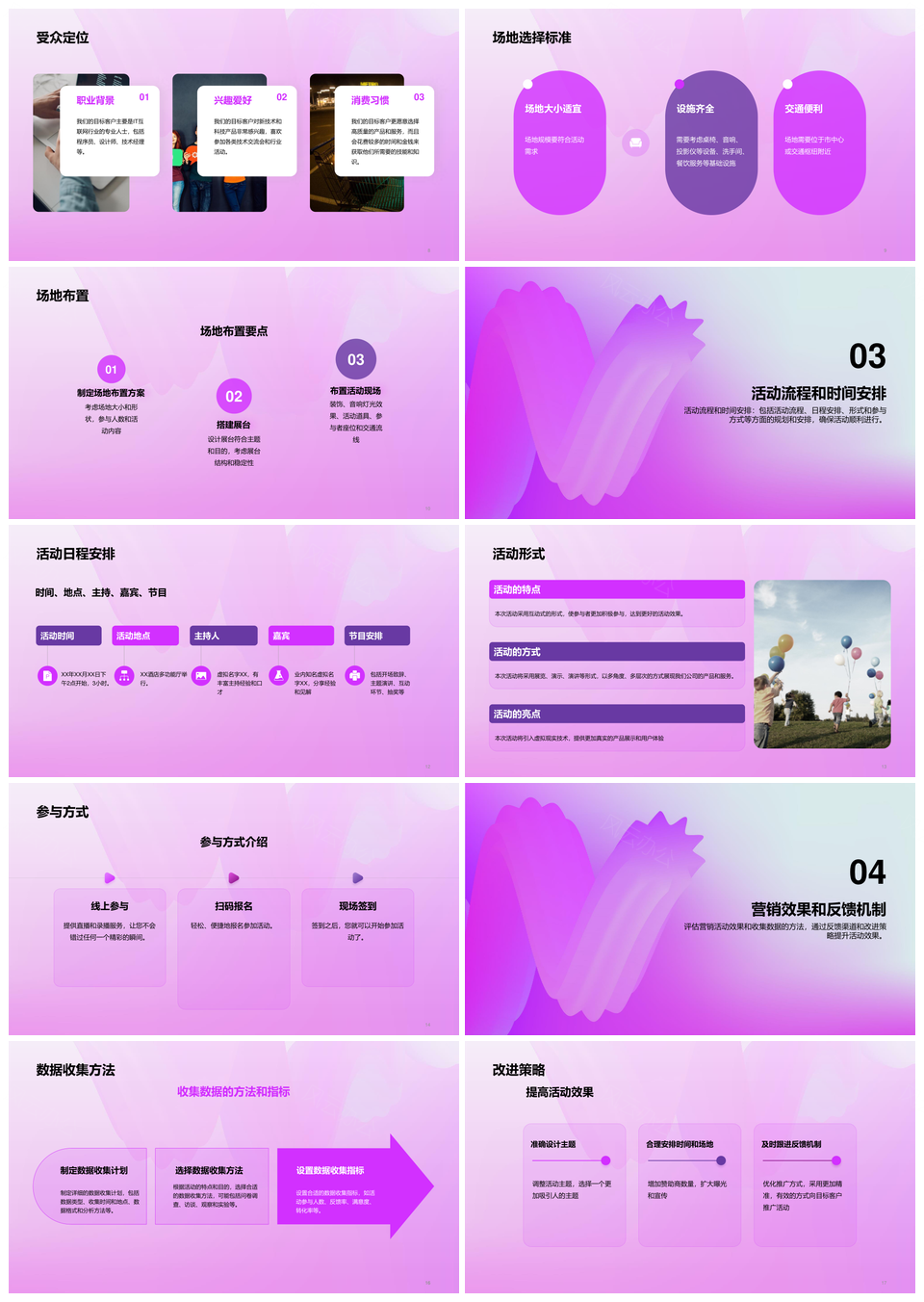 这是一张紫色IT互联网营销创意活动策划CTRPPT模板,包含紫色、IT、互联网、营销、创意、活动、策划、CTR等主题内容,也可用作紫色IT互联网营销、IT互联网营销创意、互联网营销创意活动、营销创意活动策划、创意活动策划CTR、紫色IT营销创意、互联网营销活动策划、IT创意活动策划、互联网活动策划CTR、紫色营销活动、创意活动CTR、活动策划CTR、互联网营销策划、IT活动策划、营销策划CTR等PPT场景使用。 风云办公提供的紫色IT互联网营销创意活动策划CTRPPT模板,下载格式为pptx,一共20页,作品中文字及图均可以修改和编辑,图片更改请在作品中右键图片并更换,文字修改请直接点击文字进行修改。