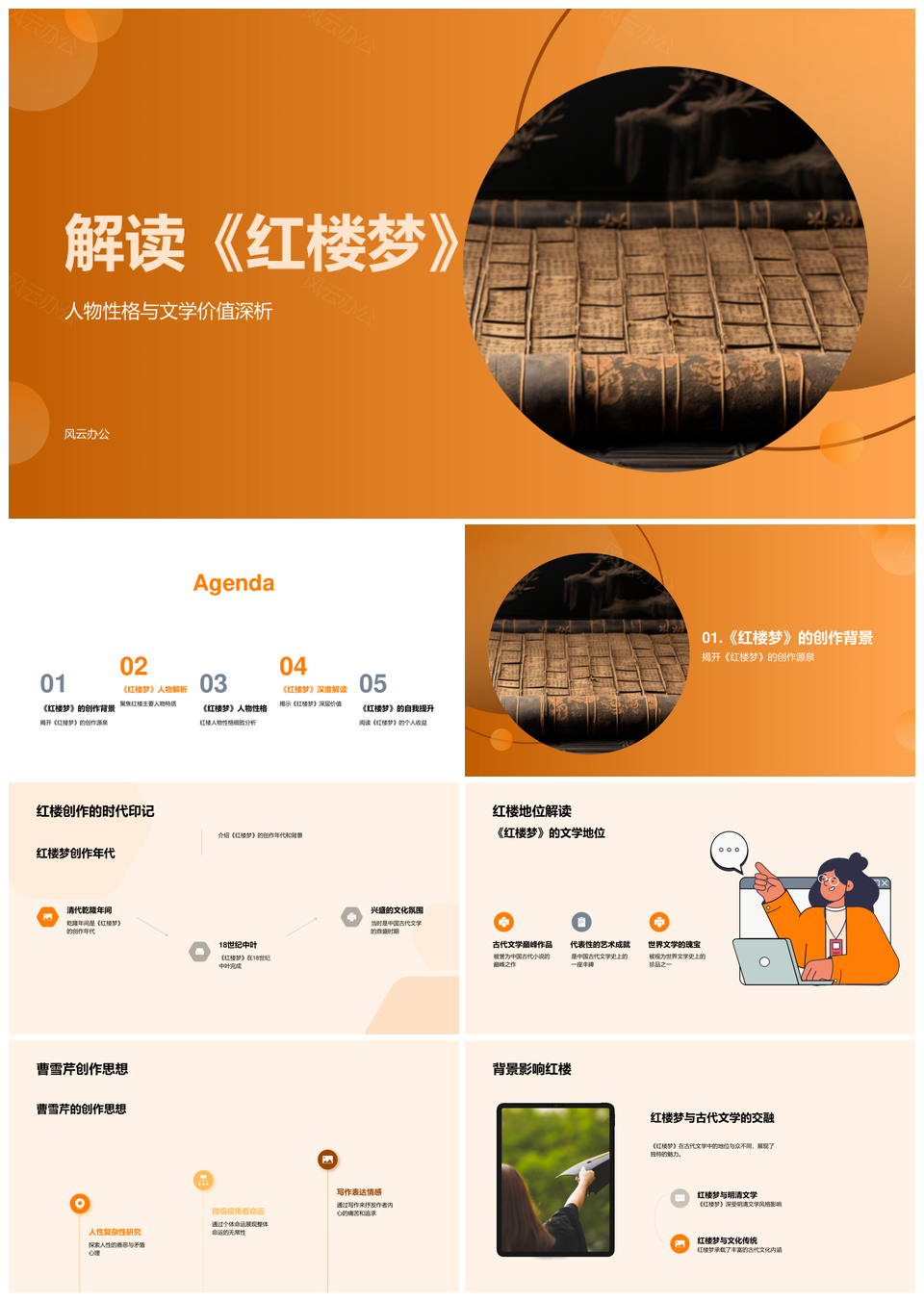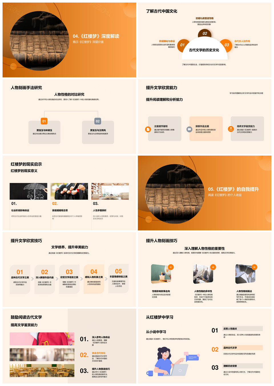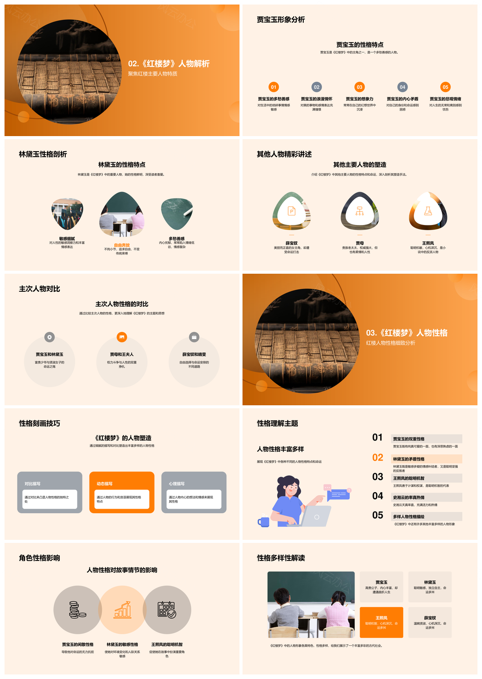红楼梦人物性格文学价值与曹雪芹创作背景PPT模板推荐