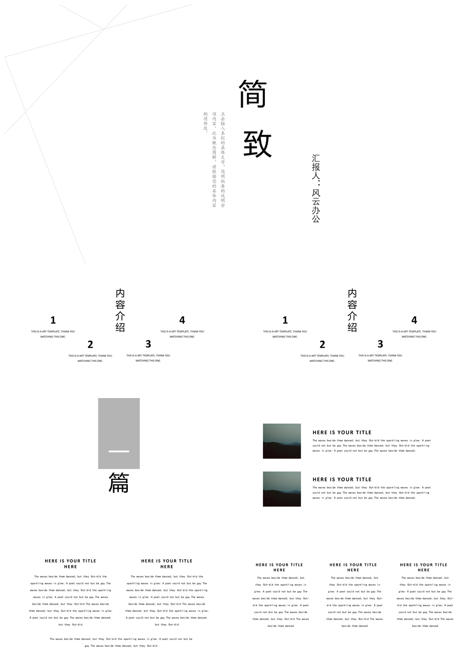 风云办公提供的动态白色黑白简约商务PPT模板,下载格式为pptx,一共15页,作品中文字及图均可以修改和编辑,图片更改请在作品中右键图片并更换,文字修改请直接点击文字进行修改。