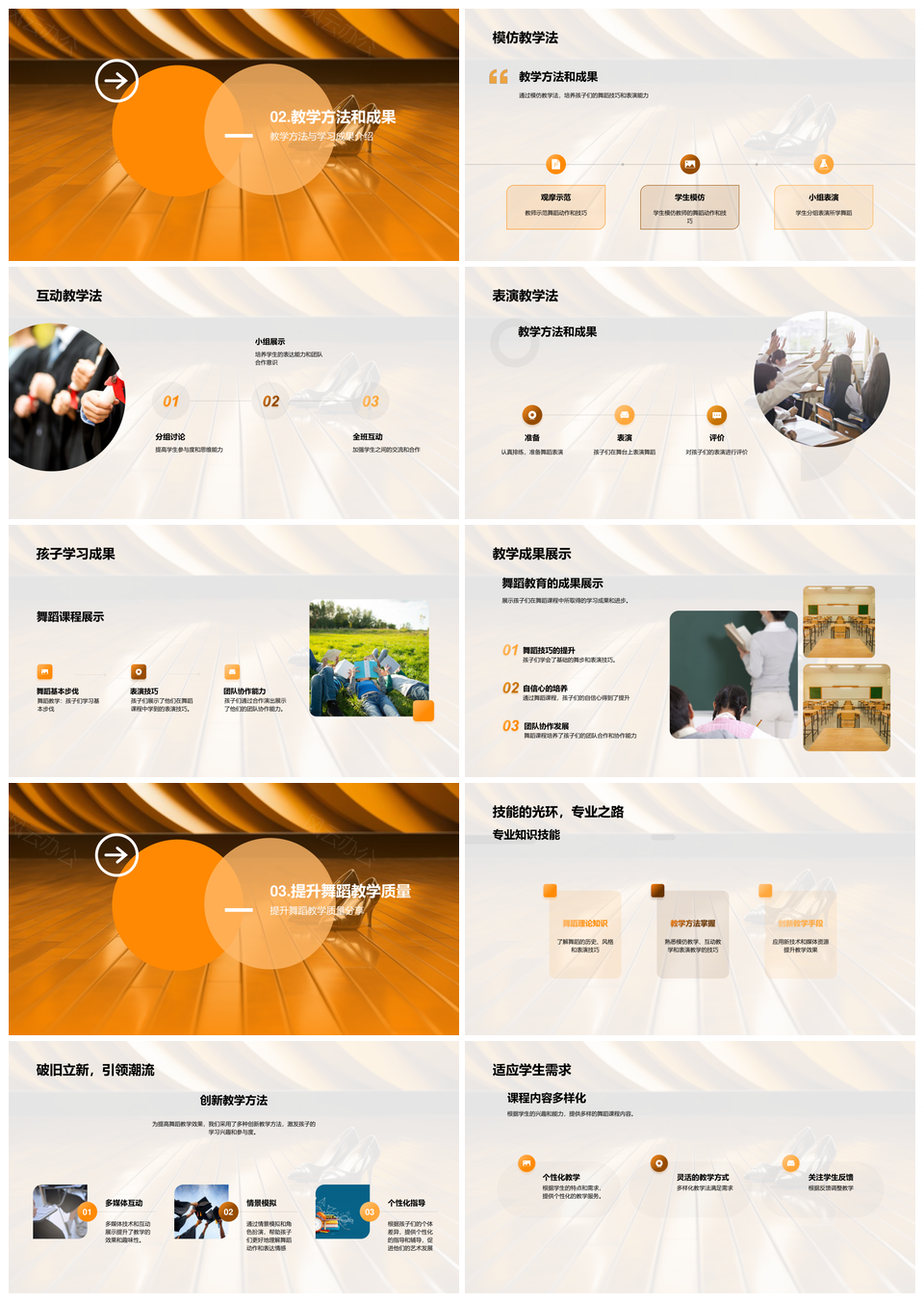 小学舞蹈教育模仿互动表演教学效果提升PPT模板推荐