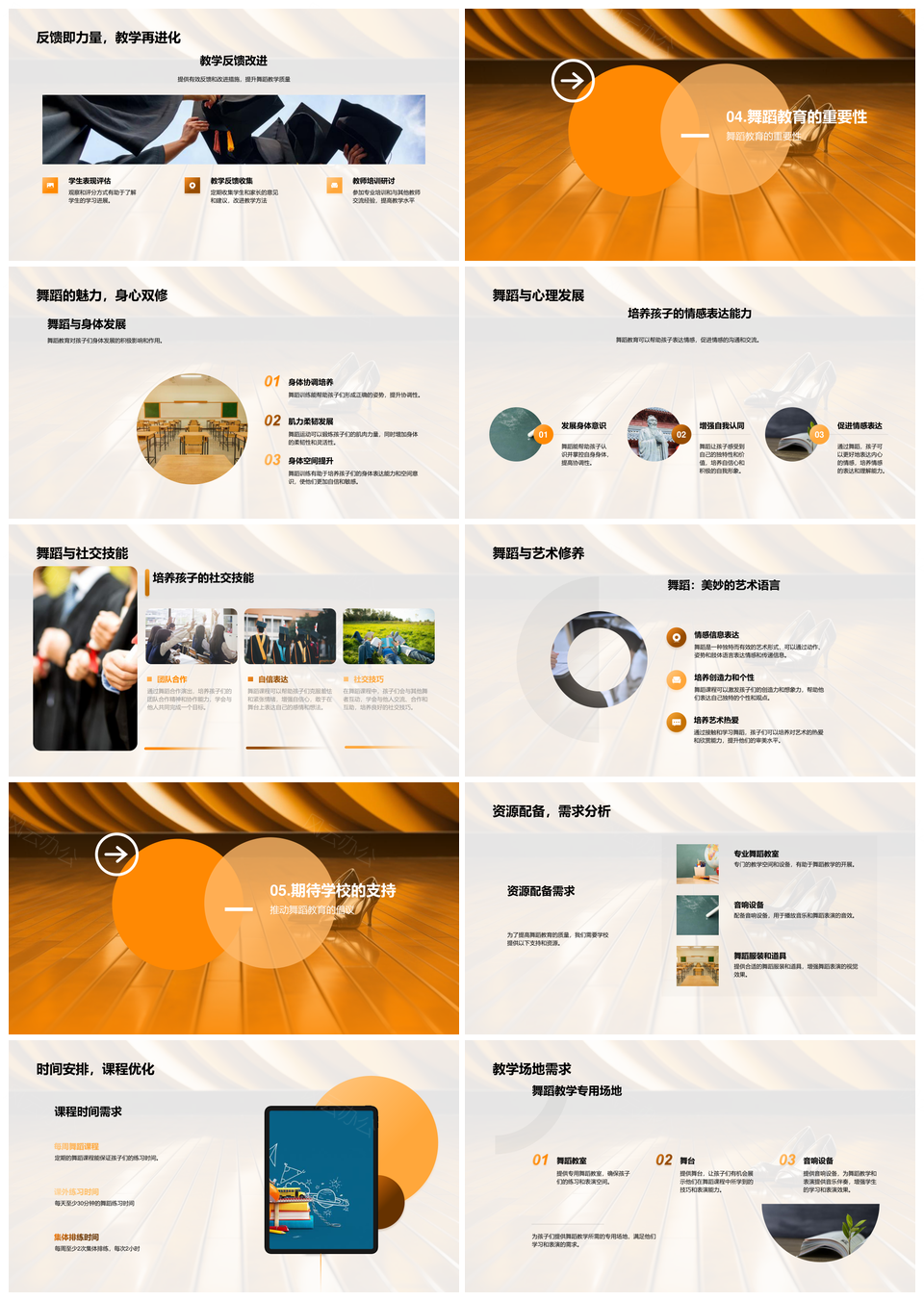 2025小学舞蹈教育课程目标孩子收获家长支持趣味课堂PPT模板