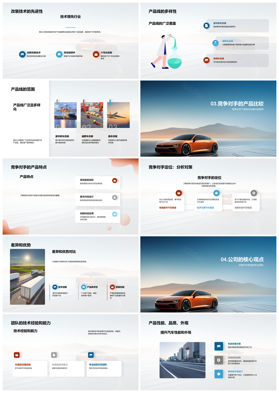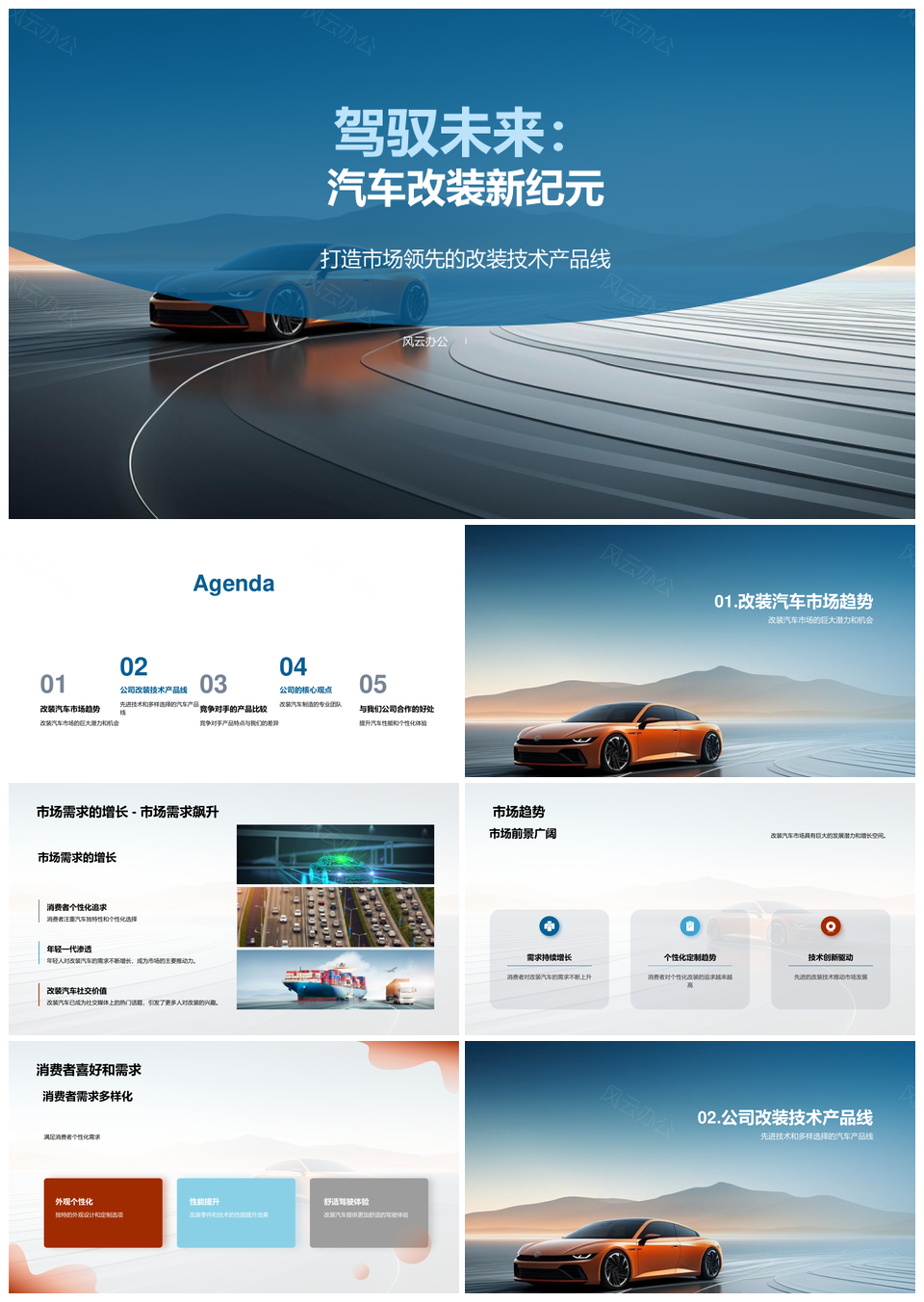 风云办公提供的改装汽车定制趋势驱动消费增长PPT模板,下载格式为pptx,一共23页,作品中文字及图均可以修改和编辑,图片更改请在作品中右键图片并更换,文字修改请直接点击文字进行修改。