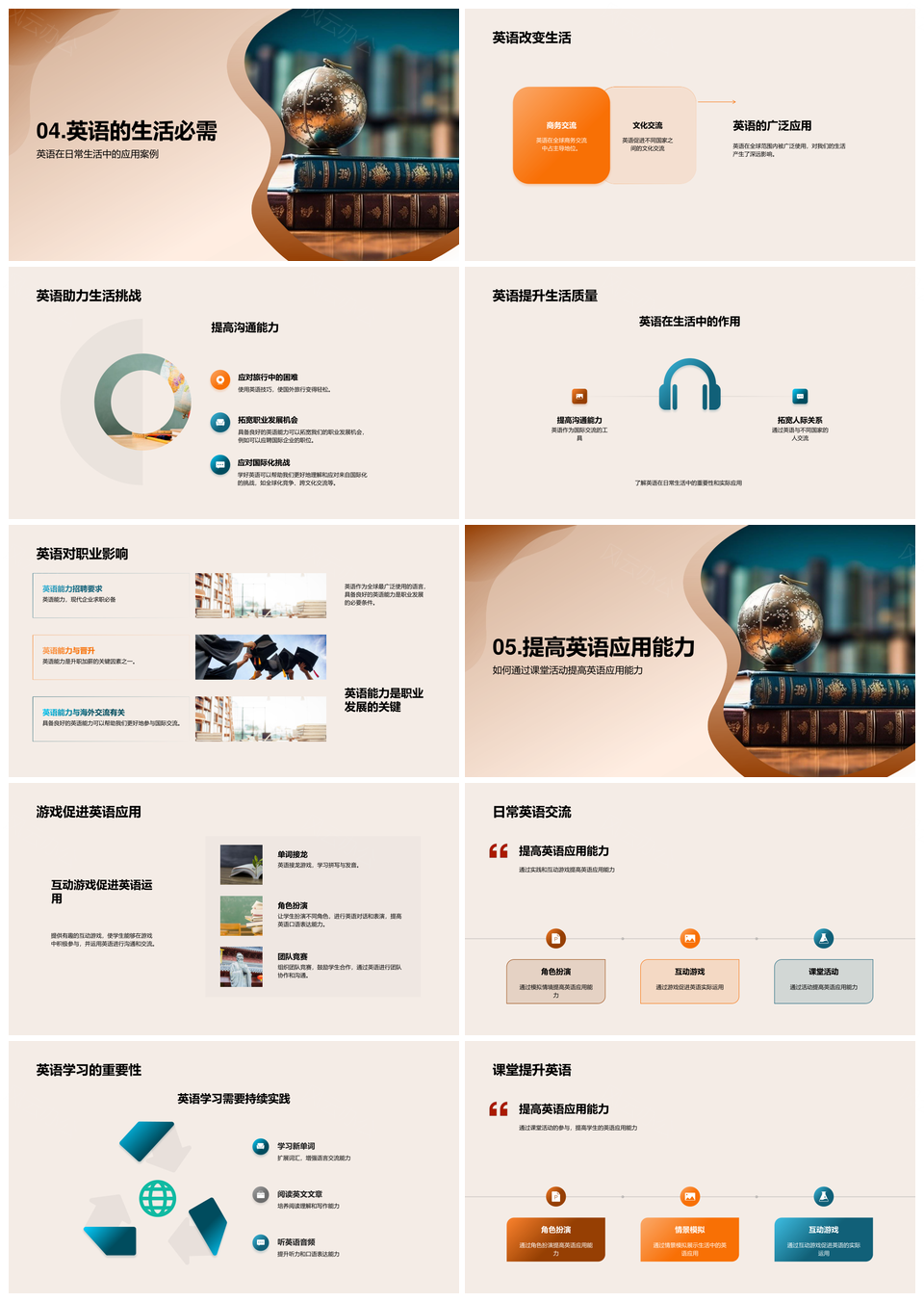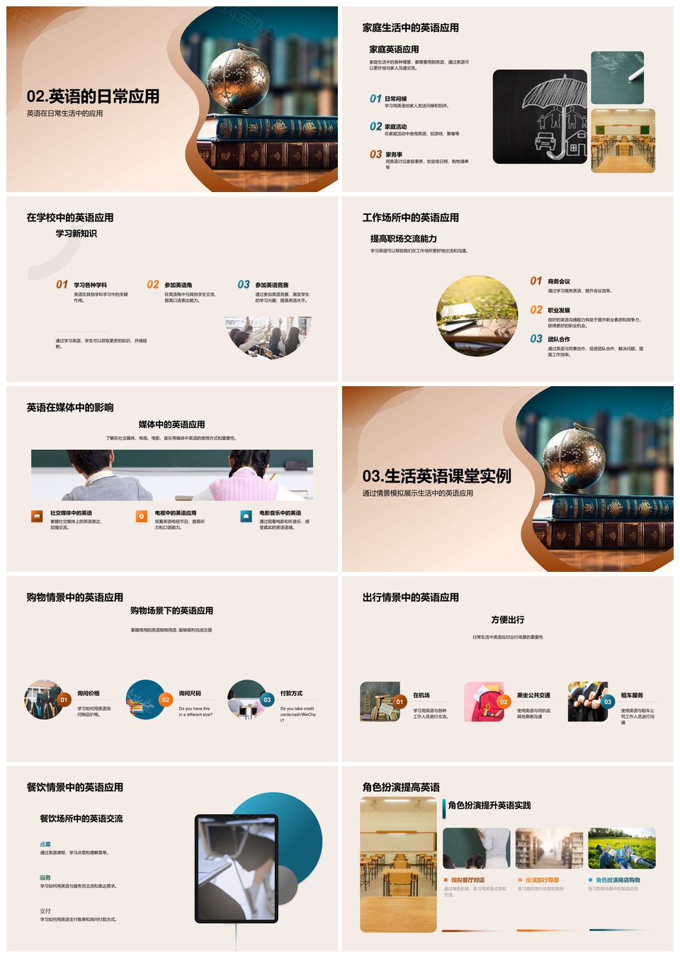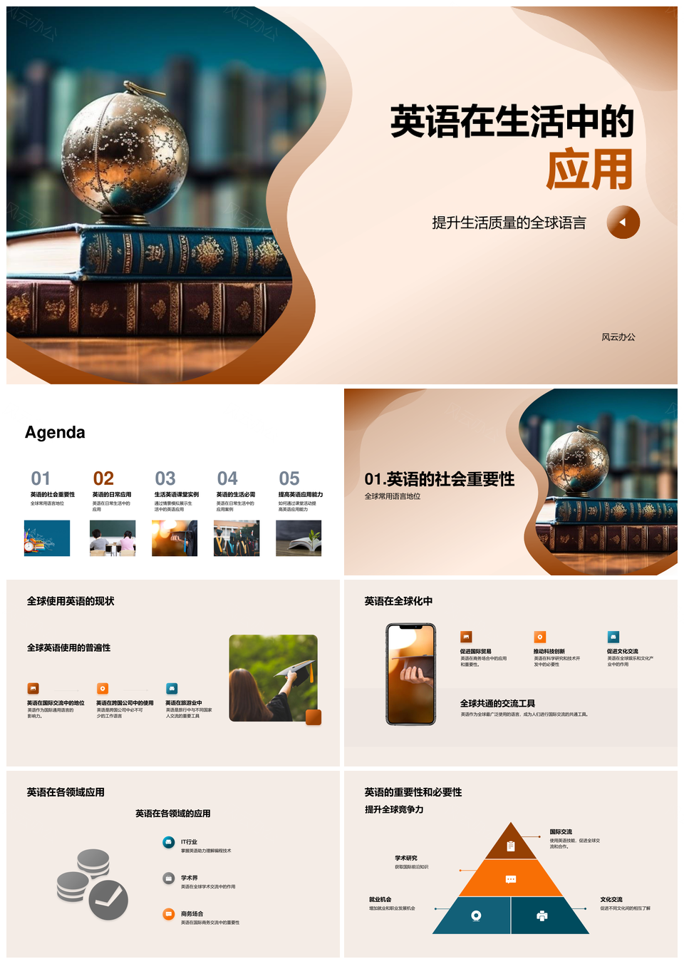 风云办公提供的英语全球生活多领域应用能力提升PPT模板,下载格式为pptx,一共28页,作品中文字及图均可以修改和编辑,图片更改请在作品中右键图片并更换,文字修改请直接点击文字进行修改。