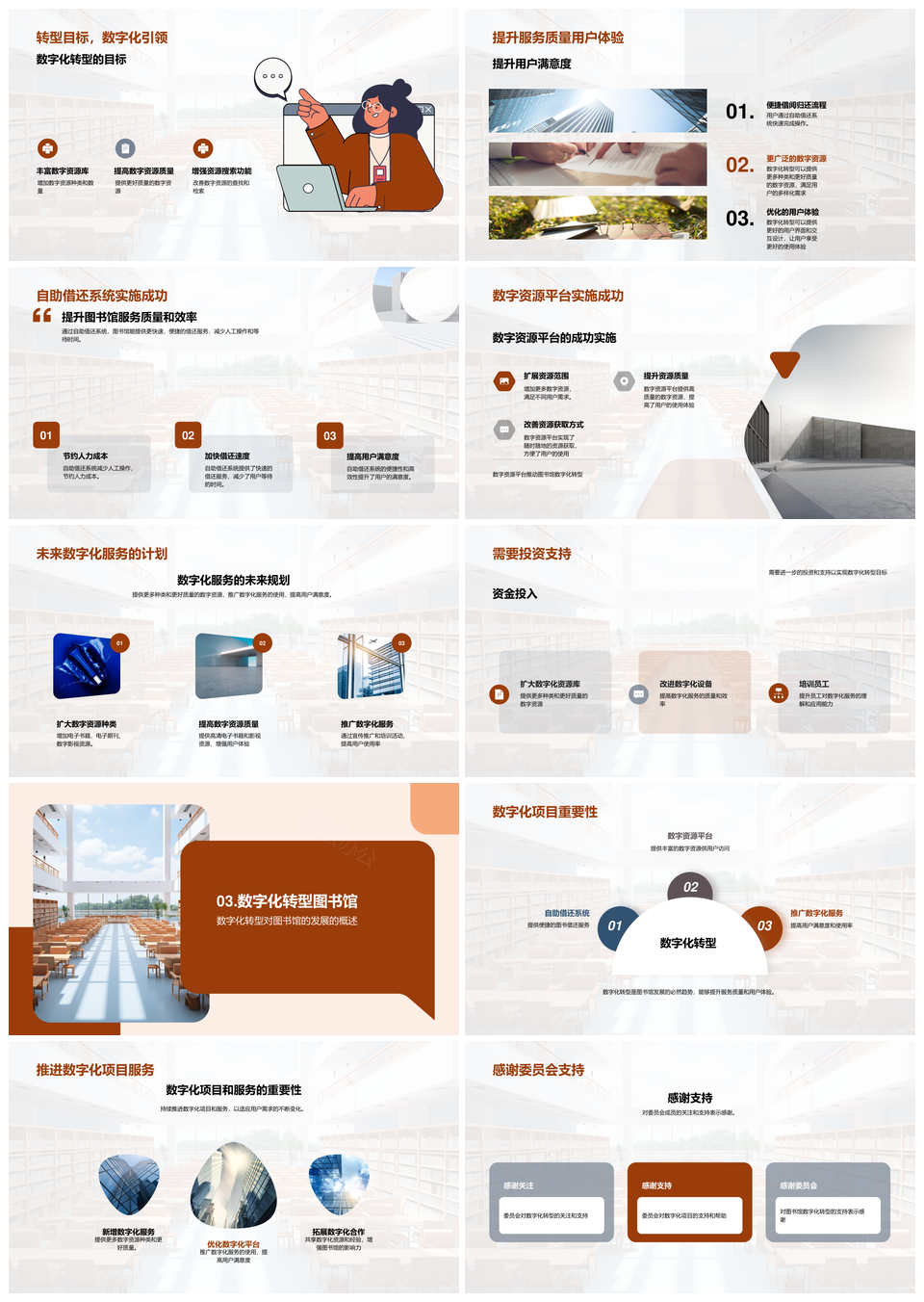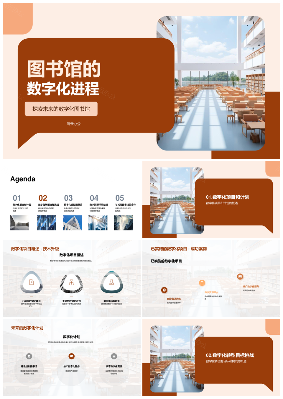 风云办公提供的图书馆数字化转型提升服务体验项目PPT模板,下载格式为pptx,一共24页,作品中文字及图均可以修改和编辑,图片更改请在作品中右键图片并更换,文字修改请直接点击文字进行修改。