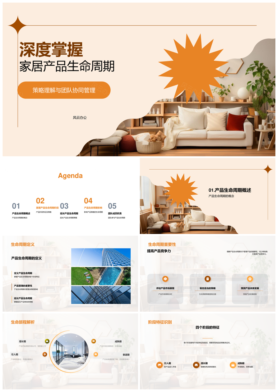 风云办公提供的家居产品生命周期策略协同创新管理PPT模板,下载格式为pptx,一共33页,作品中文字及图均可以修改和编辑,图片更改请在作品中右键图片并更换,文字修改请直接点击文字进行修改。