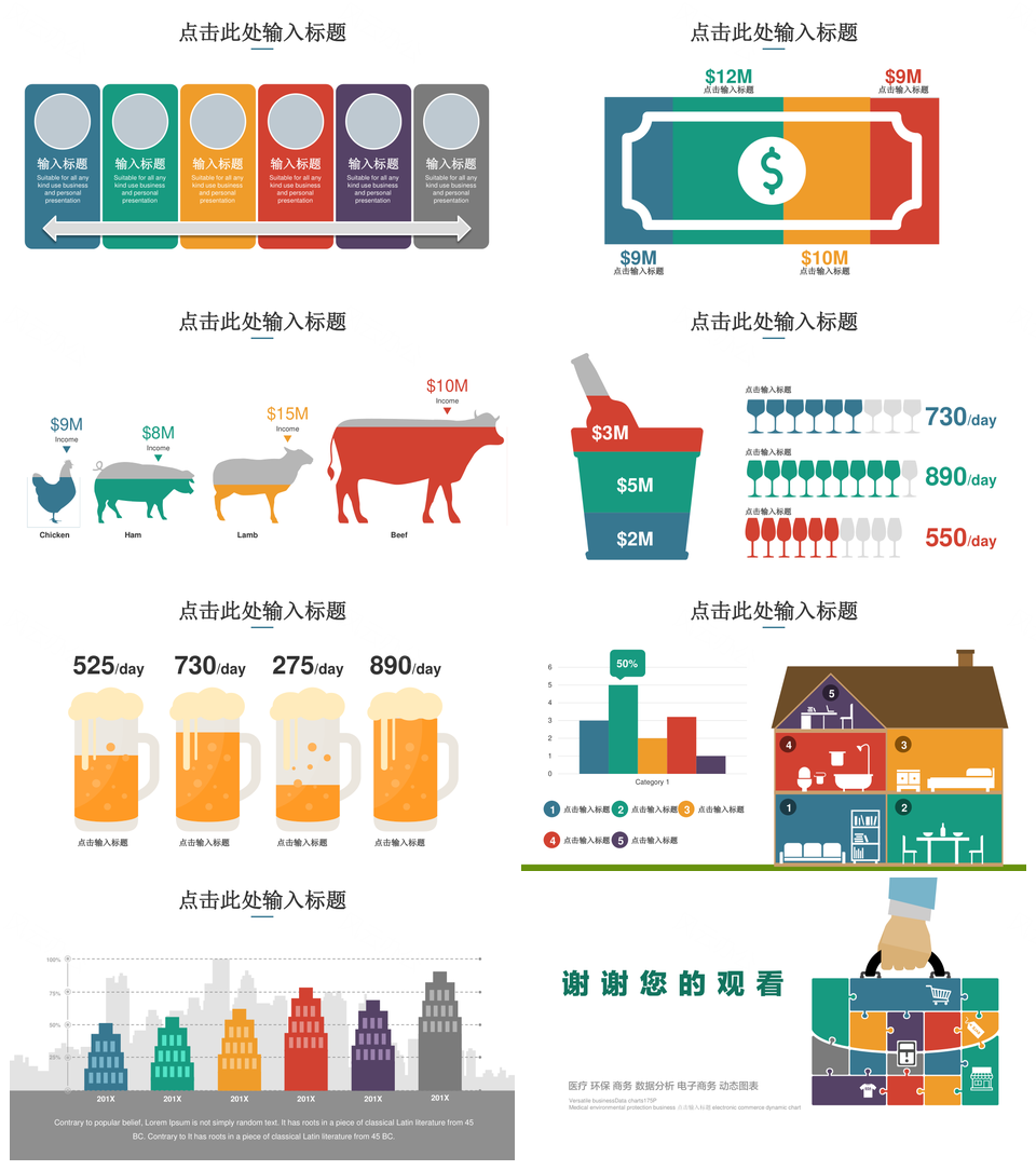 医疗环保商务数据分析电子商务动态图表PPT模板推荐