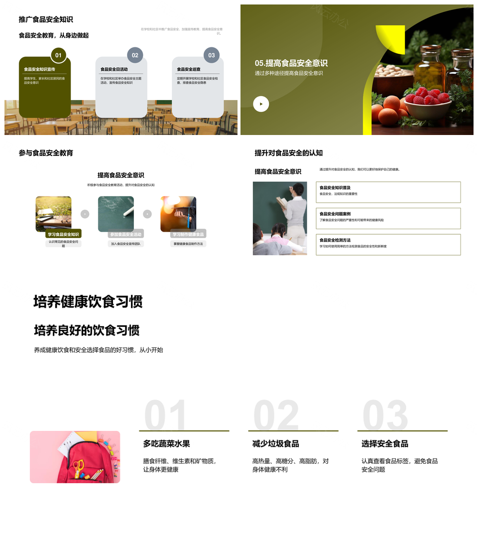 风云办公提供的饮食安全健康意识教育标签管理PPT模板,下载格式为pptx,一共23页,作品中文字及图均可以修改和编辑,图片更改请在作品中右键图片并更换,文字修改请直接点击文字进行修改。