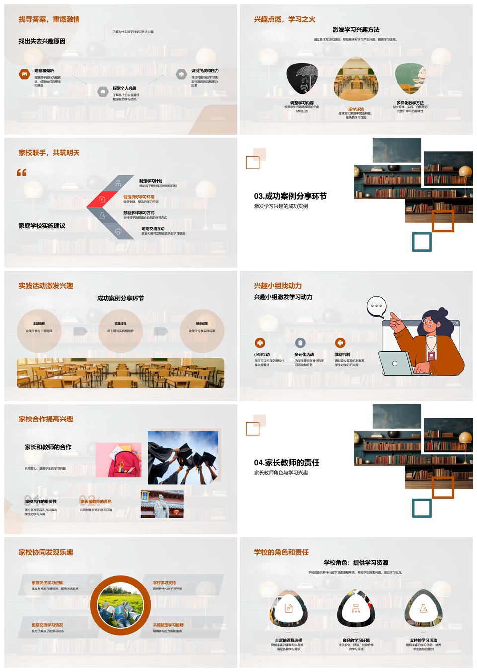 风云办公提供的激发学习兴趣家校探因共育提升案例PPT模板,下载格式为pptx,一共23页,作品中文字及图均可以修改和编辑,图片更改请在作品中右键图片并更换,文字修改请直接点击文字进行修改。