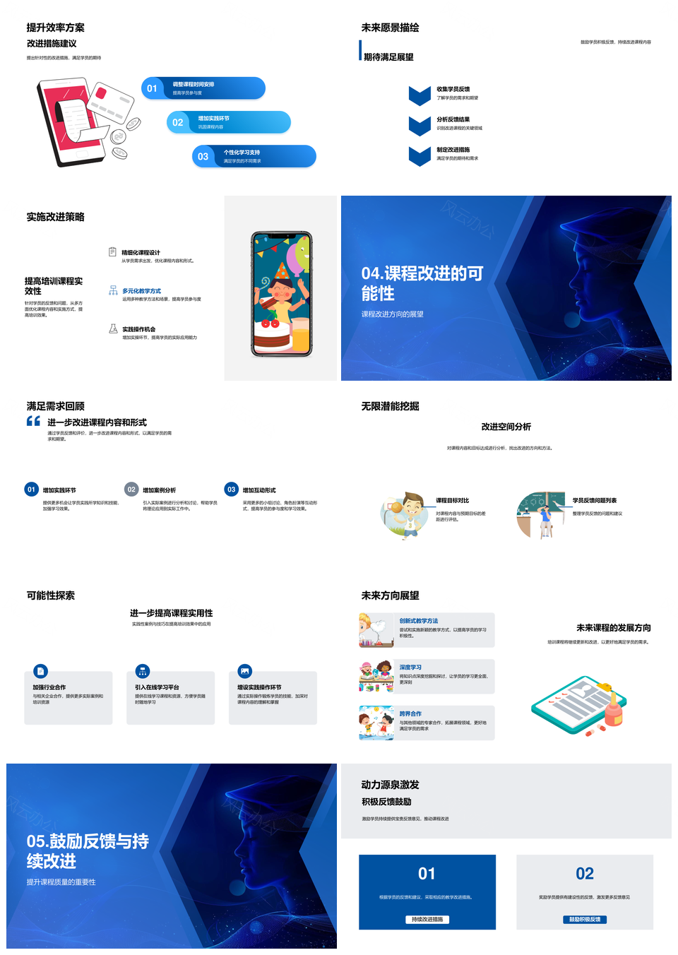 这是一张培训课程总结学员反馈改进措施质量提升PPT模板,包含培训课程、总结、学员、反馈、改进措施、质量提升等主题内容,也可用作培训课程总结学员反馈改进措施、培训课程学员反馈改进措施、学员反馈改进措施质量提升、总结学员反馈改进措施、培训课程总结学员反馈、学员反馈改进措施质量、总结学员反馈质量提升、培训课程学员反馈质量、培训课程质量提升学员、学员反馈质量提升、总结改进措施质量提升、培训课程总结学员、反馈改进措施质量、学员改进措施质量、改进措施质量提升等PPT场景使用。 风云办公提供的培训课程总结学员反馈改进措施质量提升PPT模板,下载格式为pptx,一共32页,作品中文字及图均可以修改和编辑,图片更改请在作品中右键图片并更换,文字修改请直接点击文字进行修改。