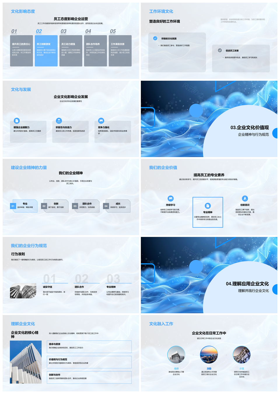 风云办公提供的企业发展与精神价值商务文化培训PPT模板,下载格式为pptx,一共23页,作品中文字及图均可以修改和编辑,图片更改请在作品中右键图片并更换,文字修改请直接点击文字进行修改。