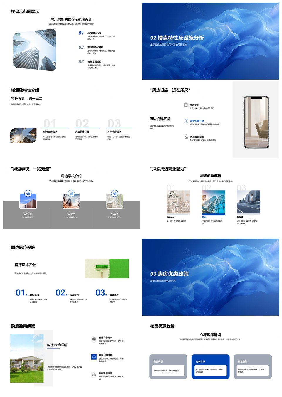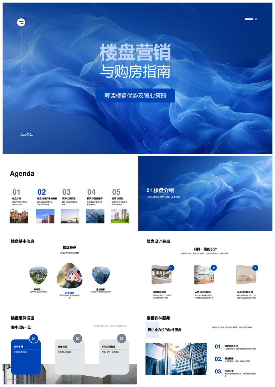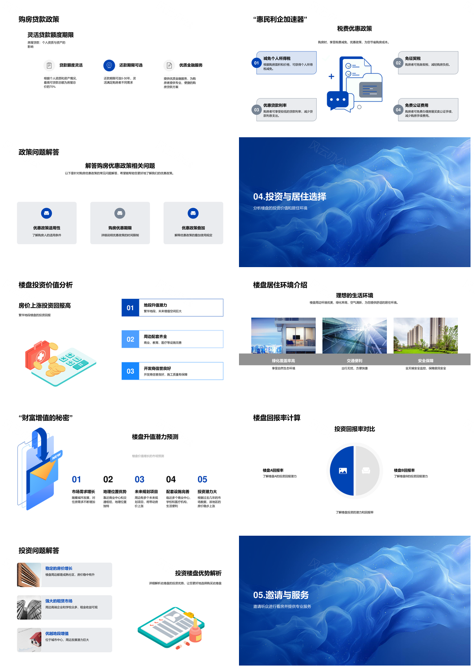 楼盘营销购房指南优势策略优惠设计设施投资PPT模板推荐