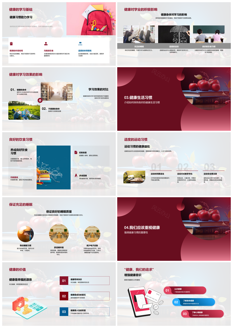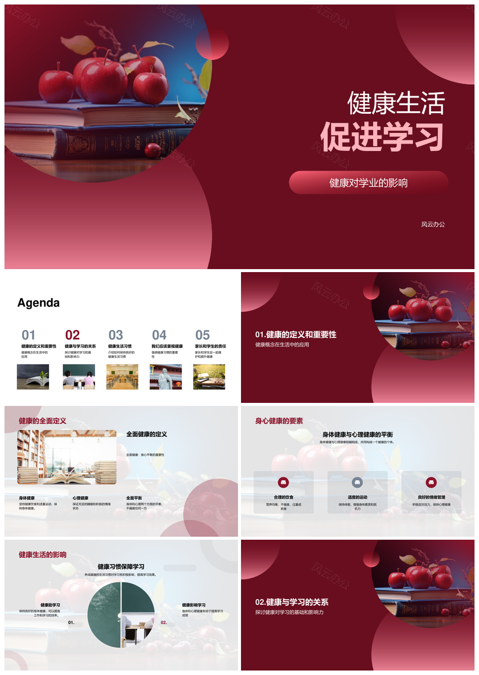 风云办公提供的健康生活促进学习与身心健康PPT模板,下载格式为pptx,一共23页,作品中文字及图均可以修改和编辑,图片更改请在作品中右键图片并更换,文字修改请直接点击文字进行修改。
