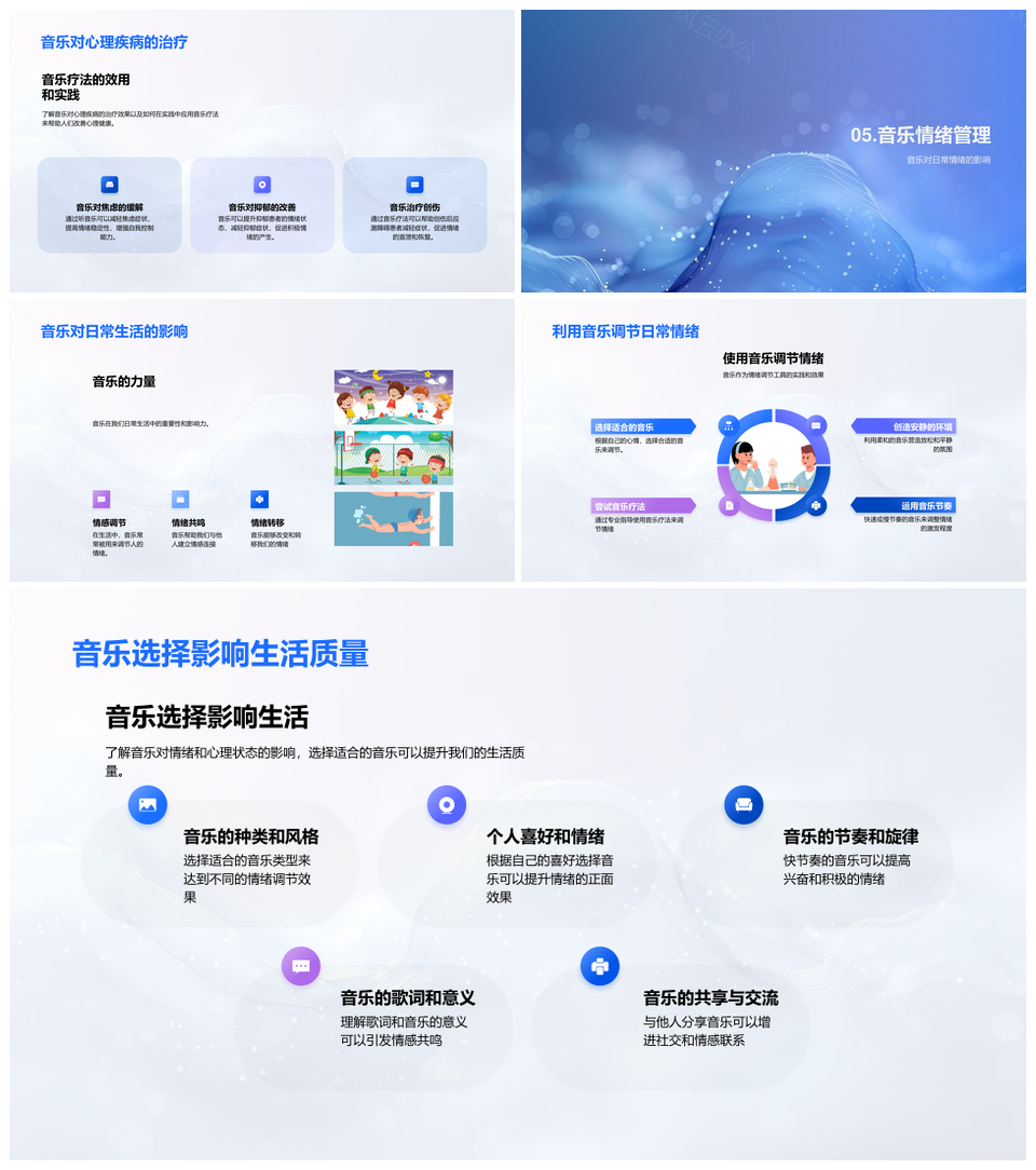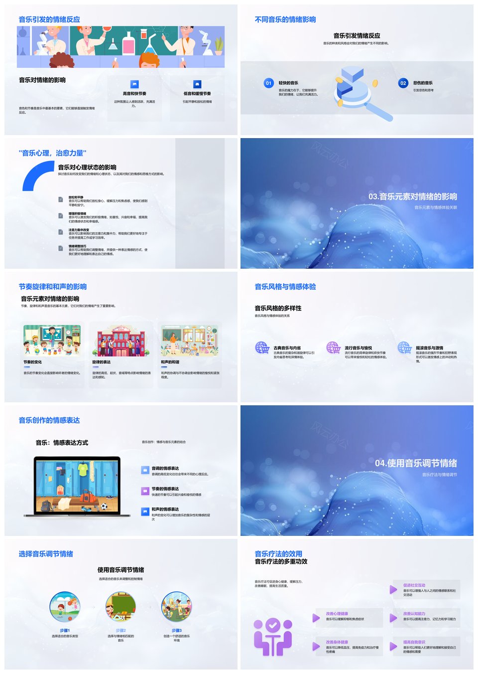 风云办公提供的音乐心理情绪神经机制与旋律疗法PPT模板,下载格式为pptx,一共23页,作品中文字及图均可以修改和编辑,图片更改请在作品中右键图片并更换,文字修改请直接点击文字进行修改。