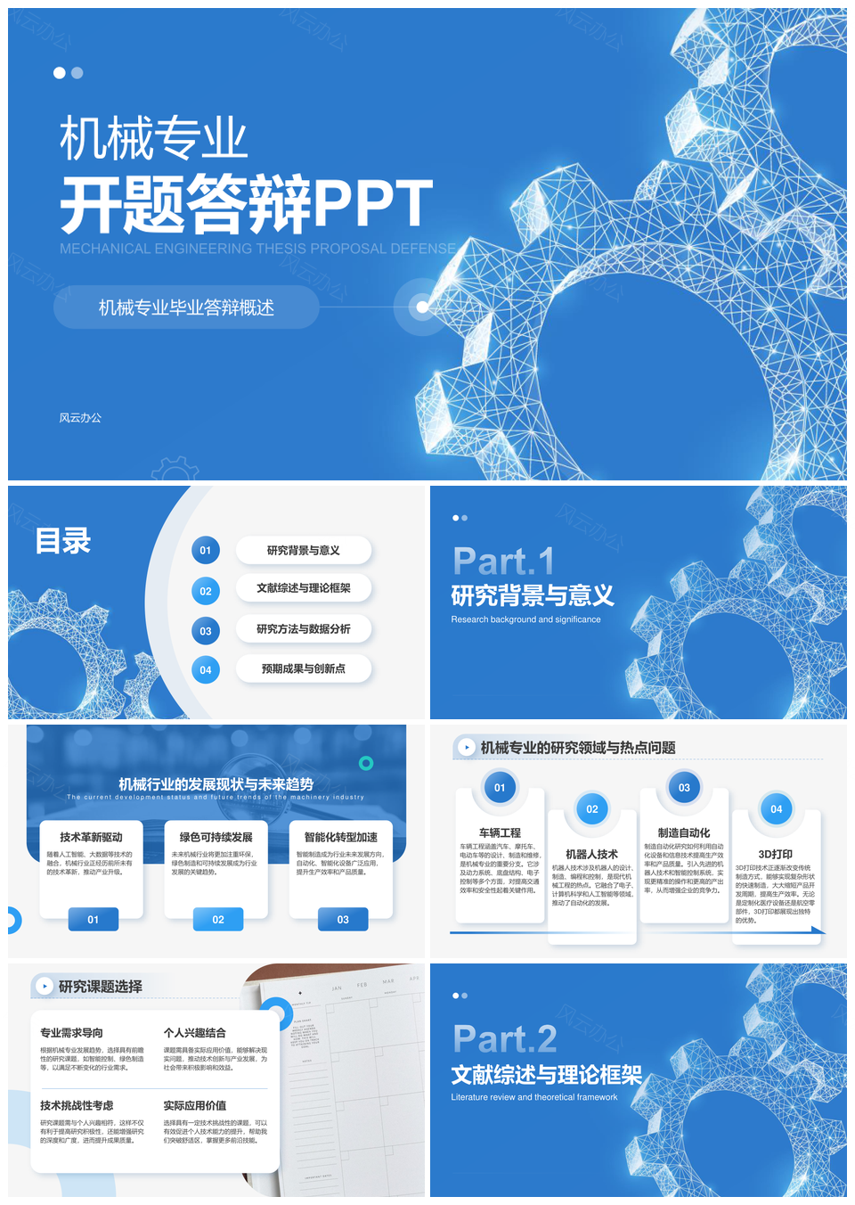 2025机械专业学生开题答辩研究背景方法成果PPT模板