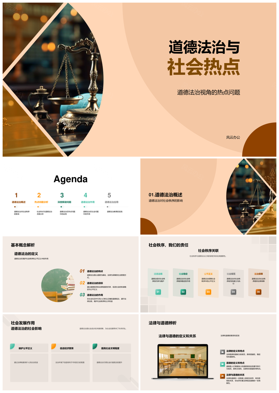风云办公提供的道德法治视角下社会热点与秩序解析PPT模板,下载格式为pptx,一共33页,作品中文字及图均可以修改和编辑,图片更改请在作品中右键图片并更换,文字修改请直接点击文字进行修改。