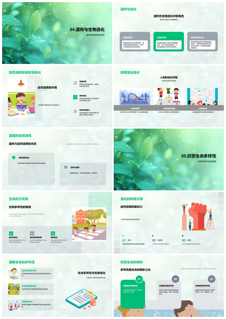 小学生进化论生物进化遗传变异自然选择物种多样性PPT模板
