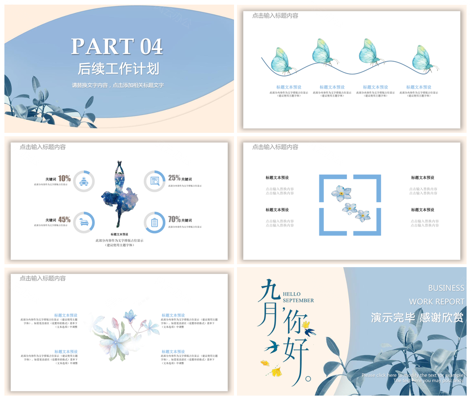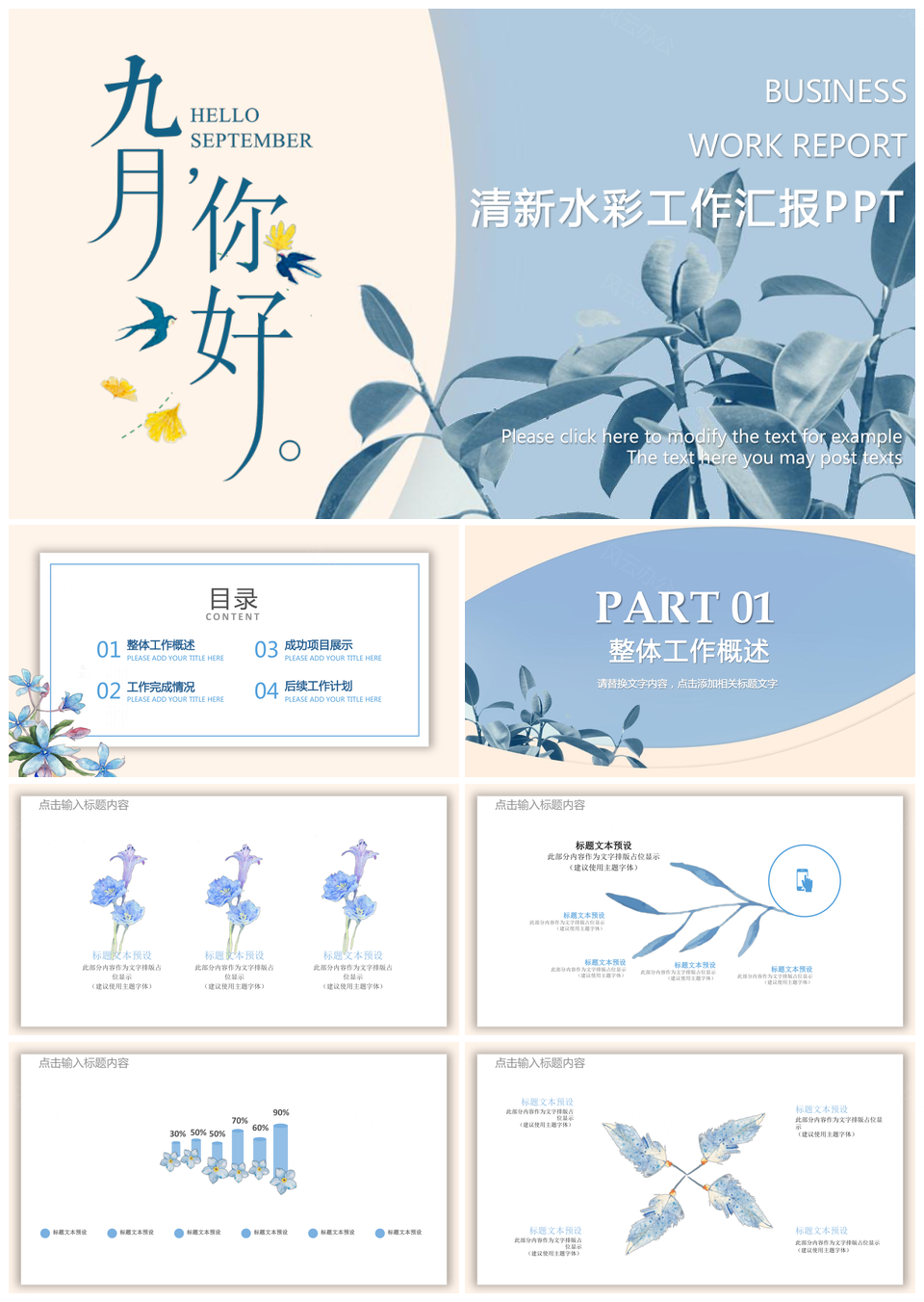 这是一张清新水彩工作汇报PPT模板,包含清新、水彩、工作汇报等主题内容,也可用作清新、水彩、工作、汇报 清新水彩工作汇报、清新水彩工作、水彩工作汇报、清新水彩、水彩工作、工作汇报等PPT场景使用。 风云办公提供的清新水彩工作汇报PPT模板,下载格式为pptx,一共23页,作品中文字及图均可以修改和编辑,图片更改请在作品中右键图片并更换,文字修改请直接点击文字进行修改。