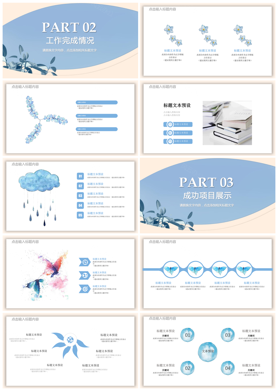 2025宽屏彩色北欧小清新水彩工作汇报PPT模板