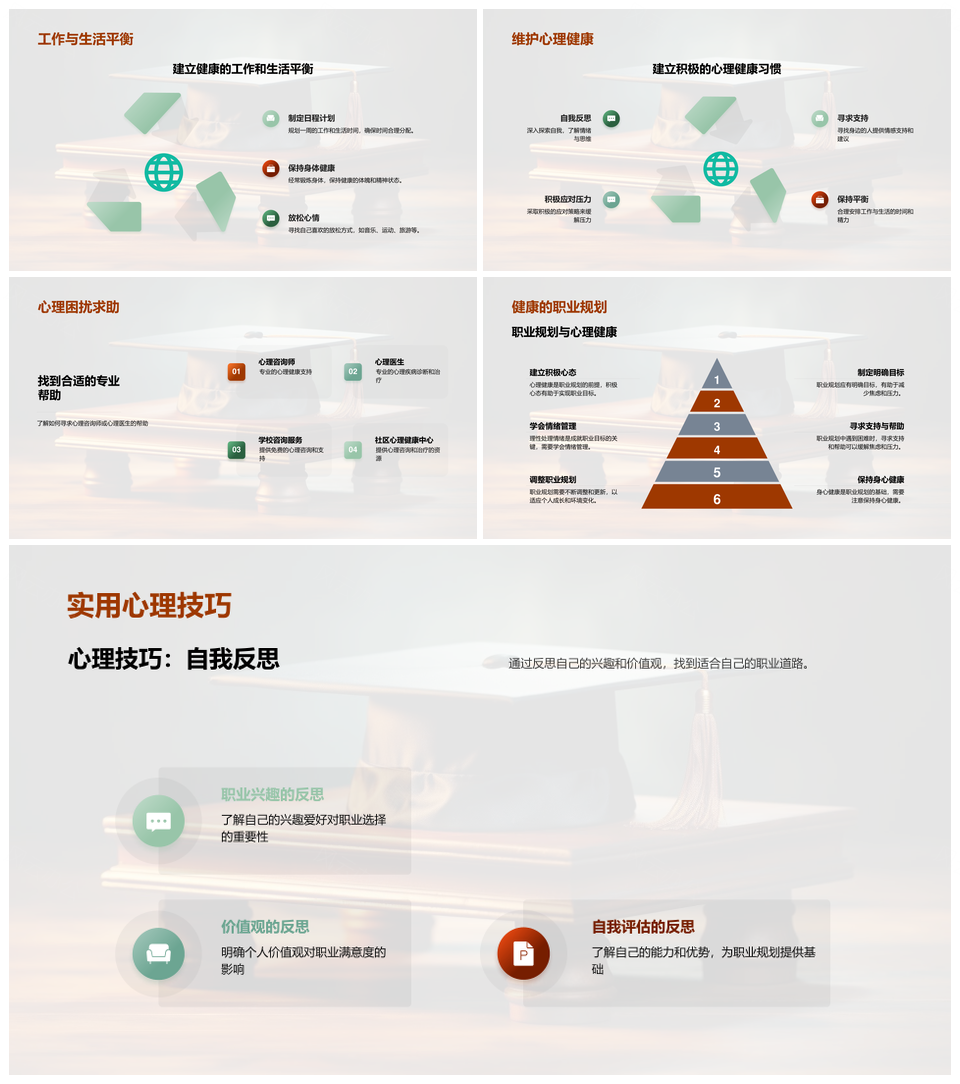 这是一张职业规划心理健康与个人成长目标管理PPT模板,包含职业规划、心理健康、个人成长、目标管理等主题内容,也可用作职业规划心理健康个人成长目标管理、职业规划心理健康个人成长、职业规划心理健康目标管理、职业规划个人成长目标管理、心理健康个人成长目标管理、职业规划心理健康、职业规划个人成长、职业规划目标管理、心理健康个人成长、心理健康目标管理、个人成长目标管理、心理健康职业规划、个人成长职业规划、目标管理职业规划、目标管理个人成长等PPT场景使用。