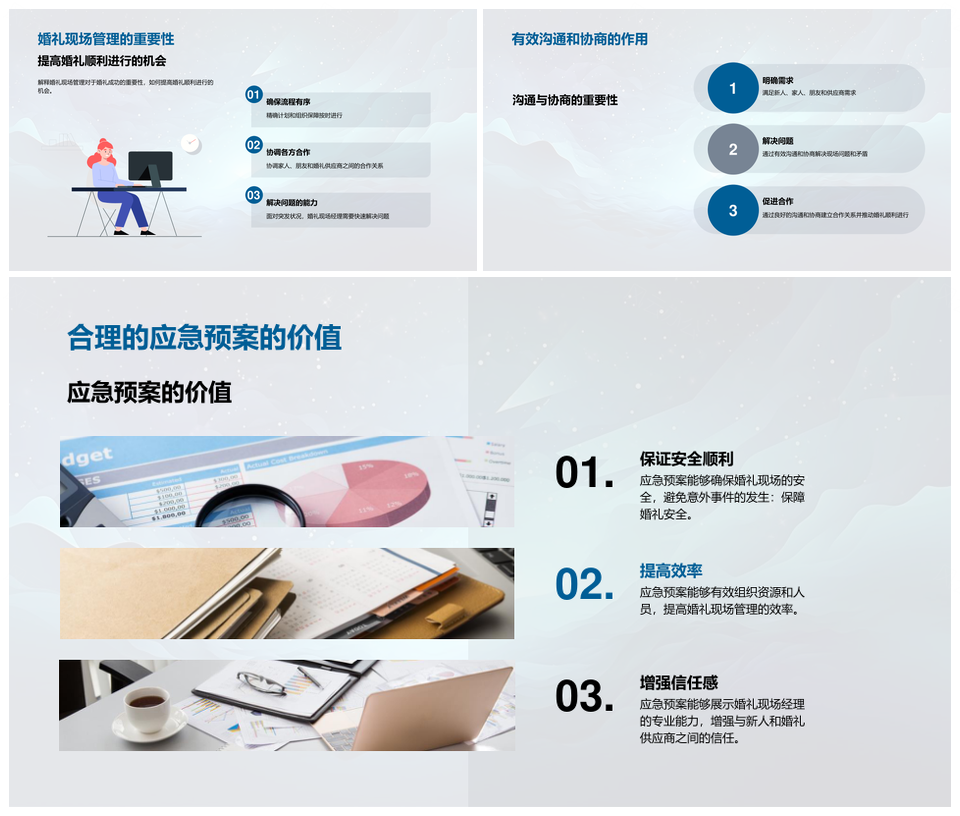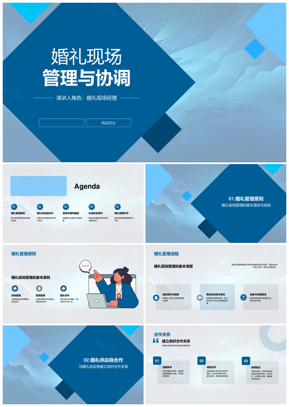 这是一张婚礼现场协调管理PPT模板,包含婚礼、现场、协调、管理等主题内容,也可用作婚礼现场协调管理、婚礼现场协调、婚礼现场管理、婚礼协调管理、现场协调管理、婚礼现场、婚礼协调、婚礼管理、现场协调、现场管理、协调管理等PPT场景使用。 风云办公提供的婚礼现场协调管理PPT模板,下载格式为pptx,一共21页,作品中文字及图均可以修改和编辑,图片更改请在作品中右键图片并更换,文字修改请直接点击文字进行修改。