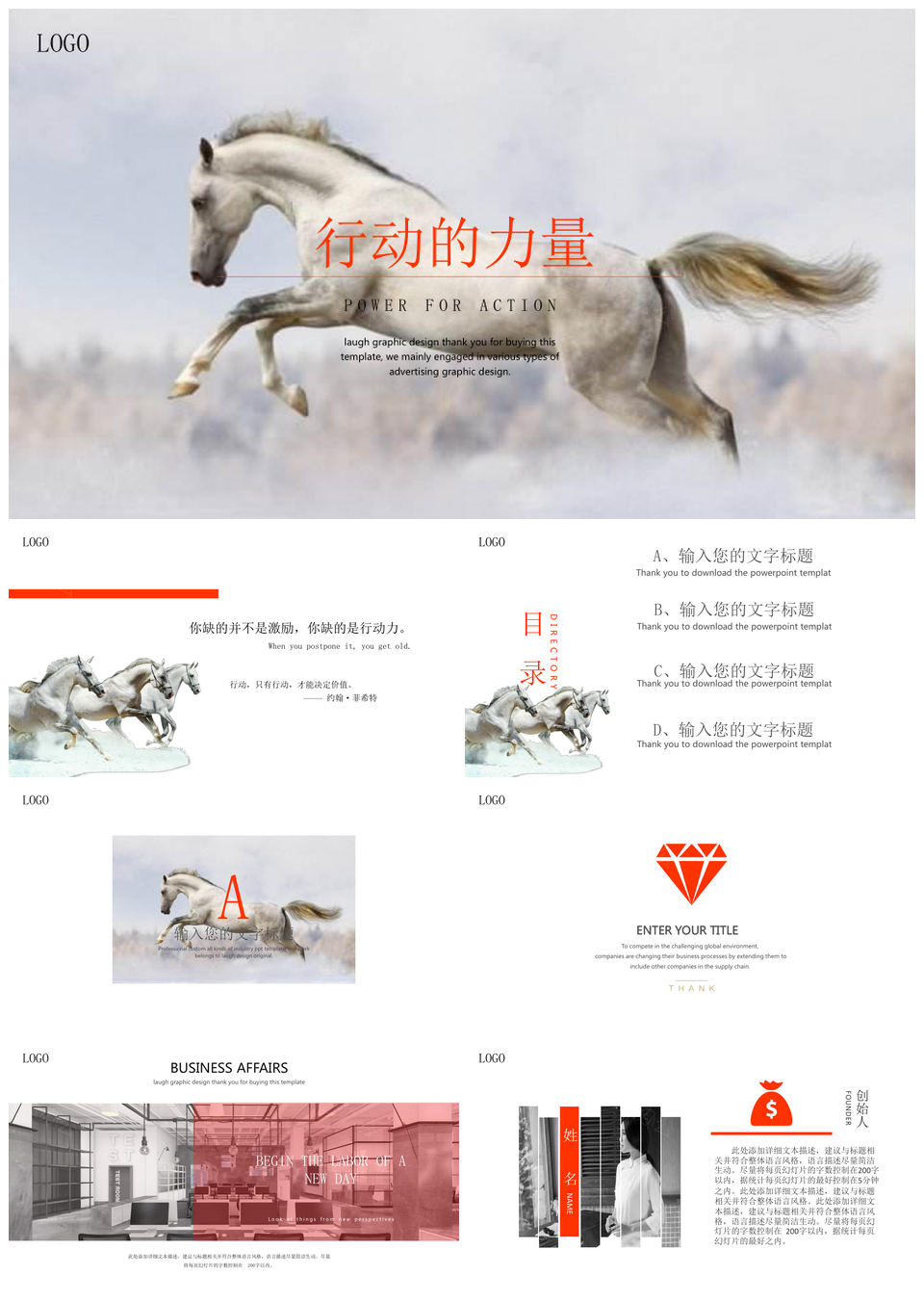这是一张行动的力量PPT模板,包含行动、力量等主题内容,也可用作行动、力量 行动力量等PPT场景使用。 风云办公提供的行动的力量PPT模板,下载格式为pptx,一共24页,作品中文字及图均可以修改和编辑,图片更改请在作品中右键图片并更换,文字修改请直接点击文字进行修改。