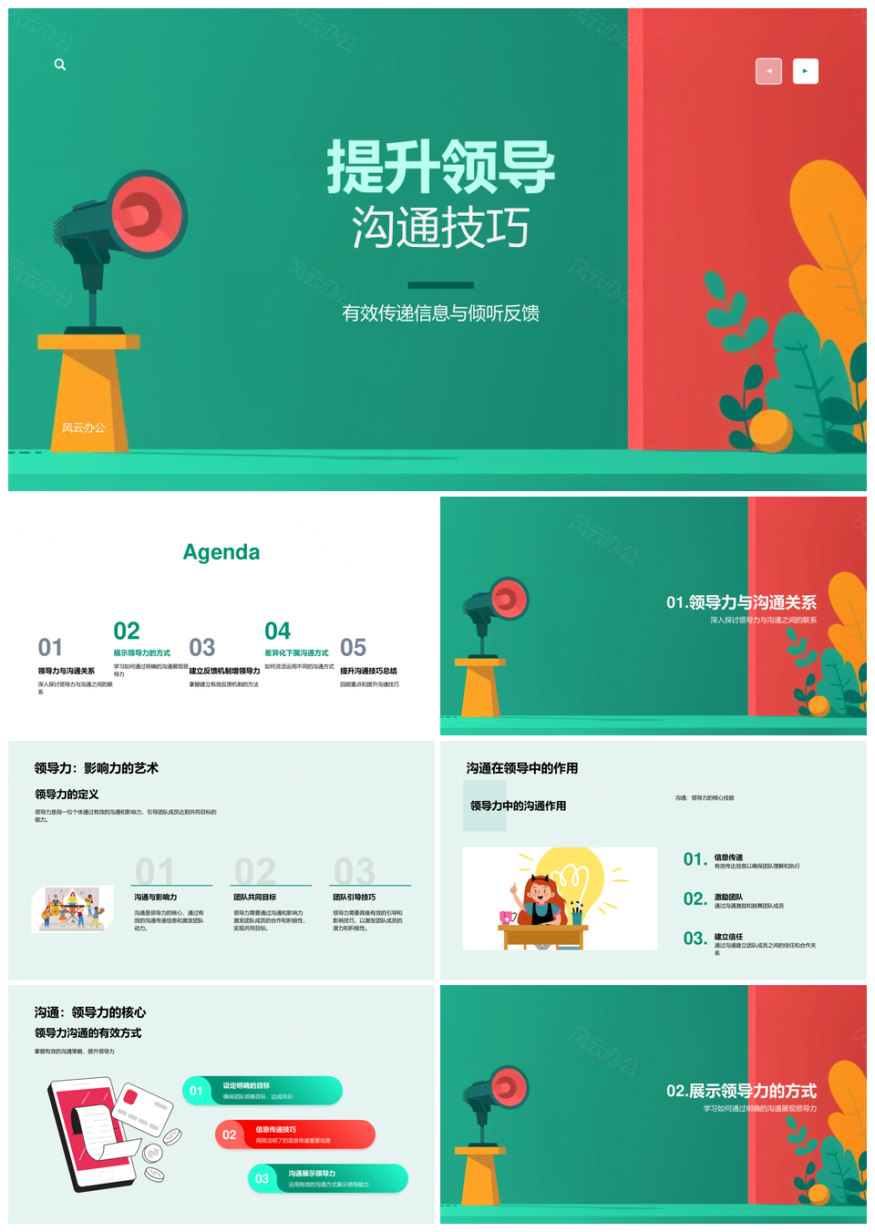 2025领导沟通技巧目标反馈倾听下属需求领导力PPT模板推荐