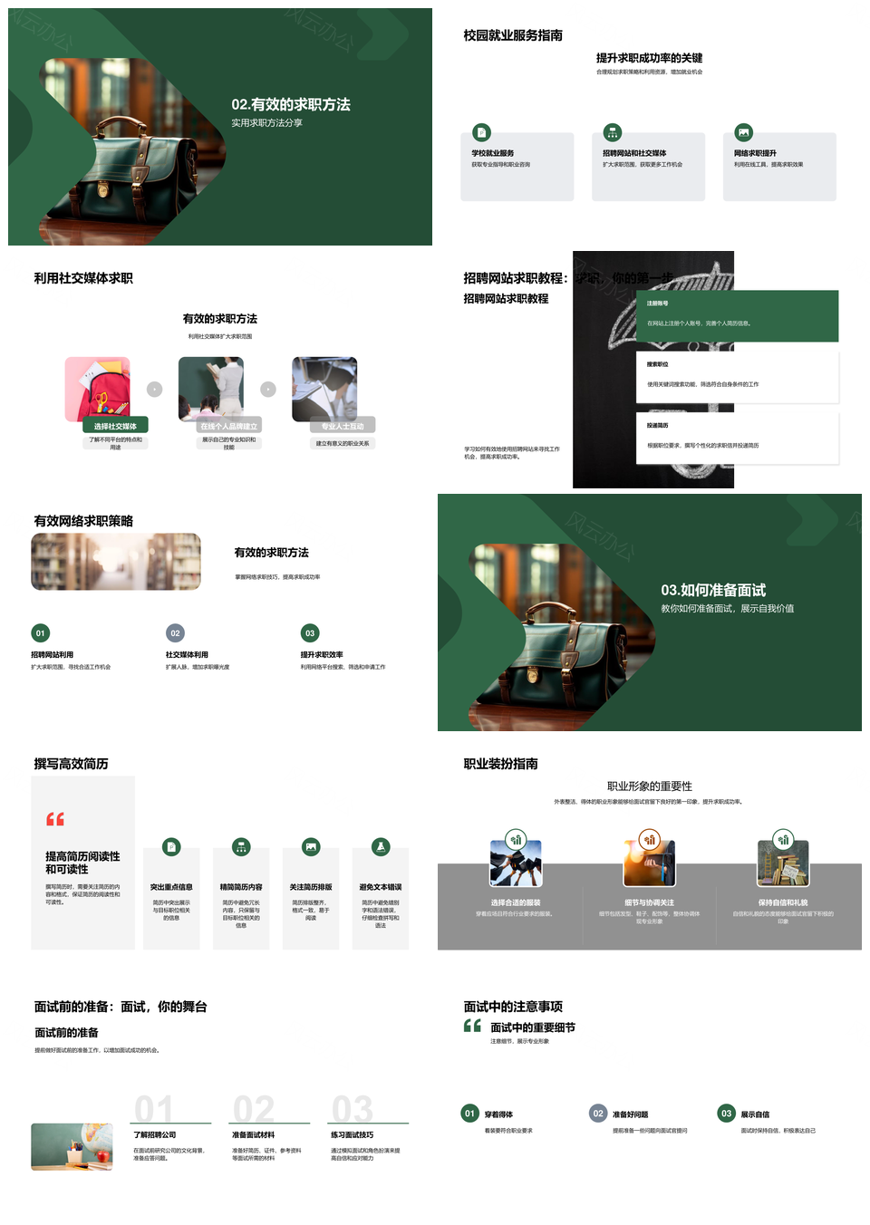 求职面试全攻略准备复盘问题应对策略礼仪解析PPT模板