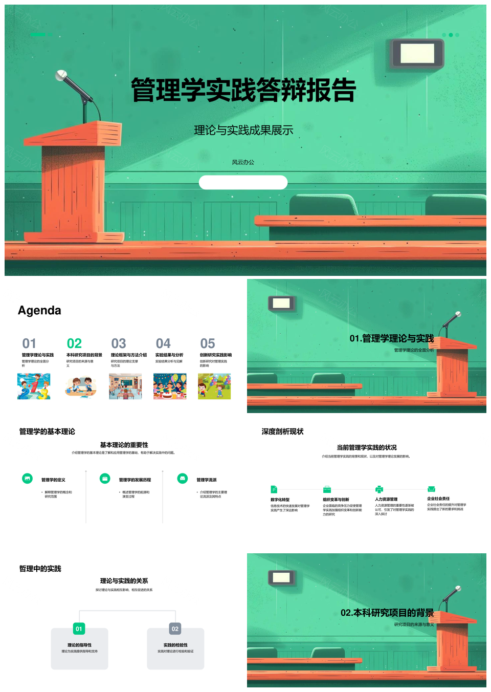 管理学毕业答辩理论框架实践应用研究方法PPT模板