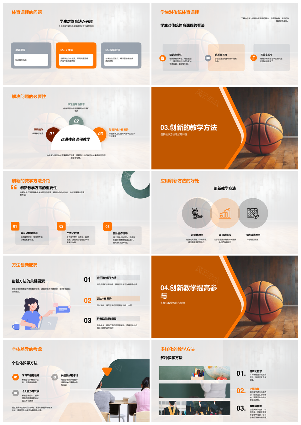 风云办公提供的中学篮球趣味创新体育教学方法PPT模板,下载格式为pptx,一共23页,作品中文字及图均可以修改和编辑,图片更改请在作品中右键图片并更换,文字修改请直接点击文字进行修改。