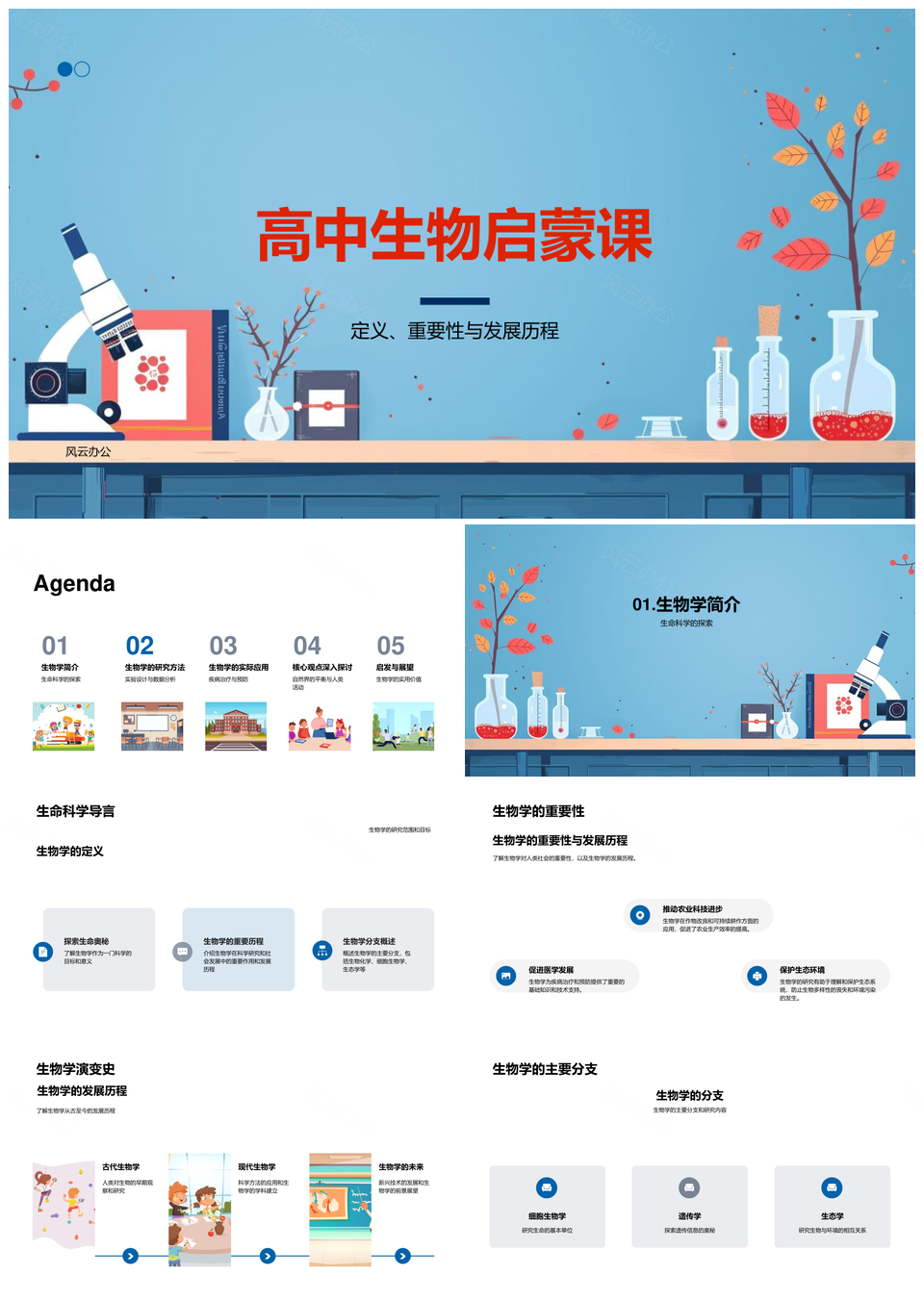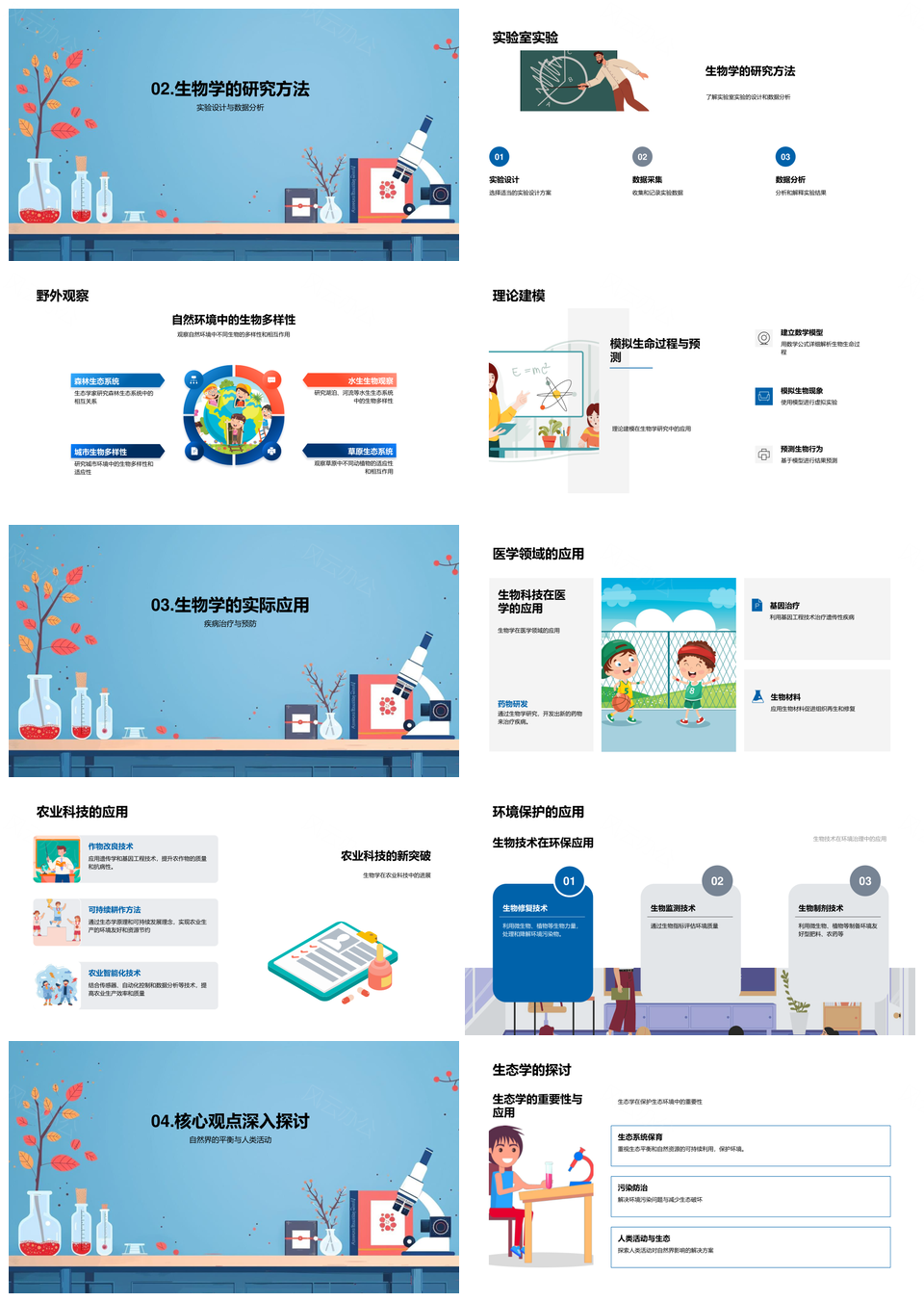 生物学全览定义分支应用实验环保疾病预防PPT模板