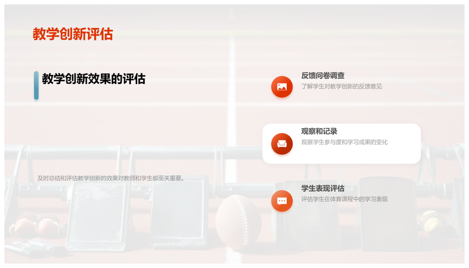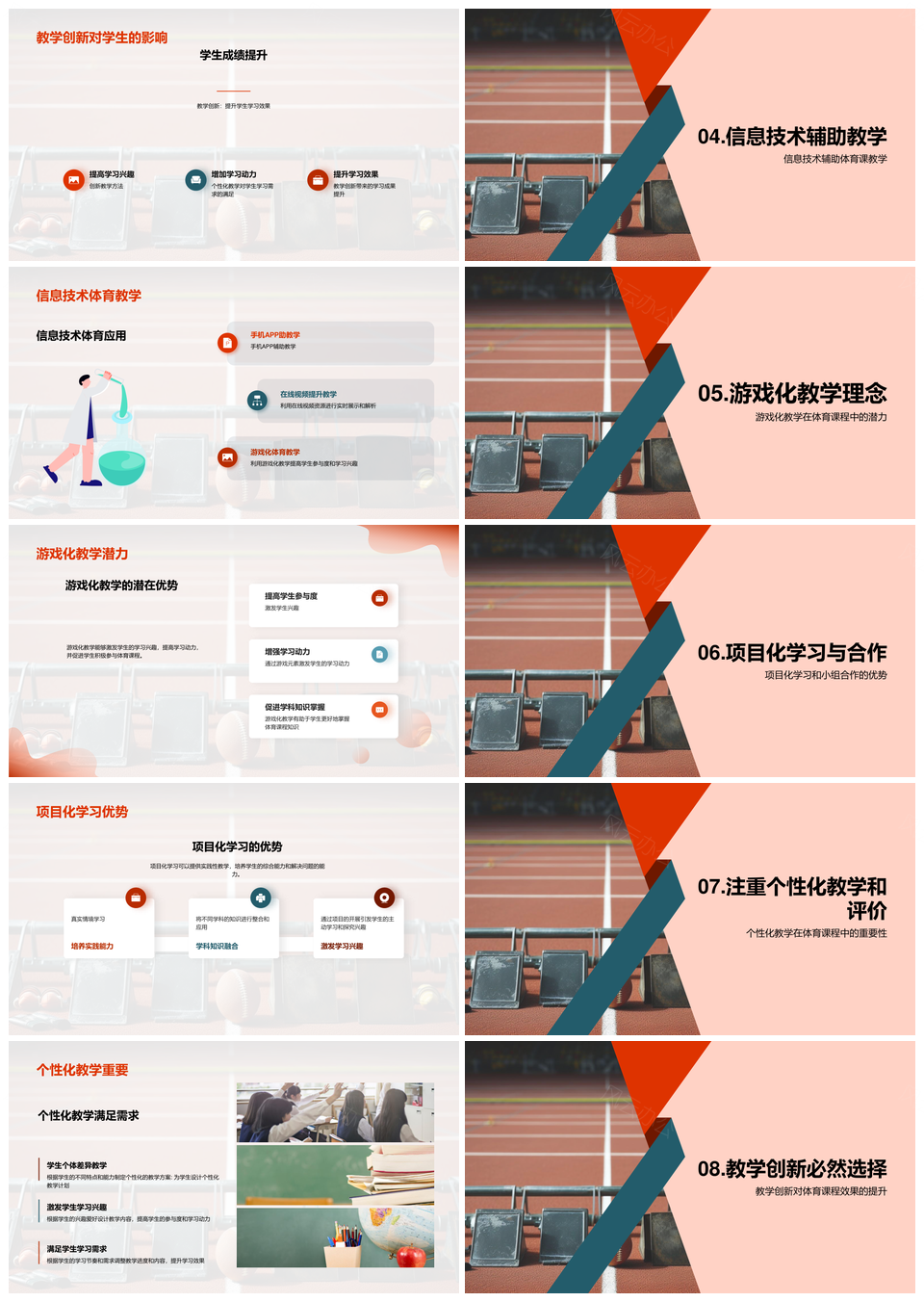 这是一张初中体育教学创新与科技设备应用现状PPT模板,包含初中、体育教学、创新、科技设备、应用、现状等主题内容,也可用作初中体育教学创新、科技设备应用现状、初中体育教学、体育教学创新、教学创新科技、科技设备应用、设备应用现状、初中体育、体育教学、教学创新、创新科技、科技设备、设备应用、应用现状、体育科技设备等PPT场景使用。