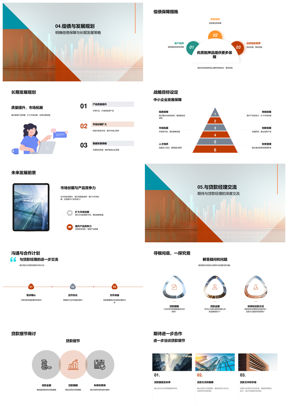 这是一张中小企业融资规划与银行贷款策略路线图PPT模板,包含中小企业融资规划、银行贷款策略、路线图等主题内容,也可用作中小企业融资规划银行贷款、中小企业融资银行贷款策略、中小企业银行贷款策略路线图、融资规划银行贷款策略、规划银行贷款策略路线图、融资银行贷款策略路线图、中小企业融资规划、中小企业融资银行贷款、中小企业银行贷款策略、融资规划银行贷款、规划银行贷款策略、银行贷款策略路线图、中小企业银行贷款路线图、中小企业融资、银行贷款策略等PPT场景使用。 风云办公提供的中小企业融资规划与银行贷款策略路线图PPT模板,下载格式为pptx,一共28页,作品中文字及图均可以修改和编辑,图片更改请在作品中右键图片并更换,文字修改请直接点击文字进行修改。