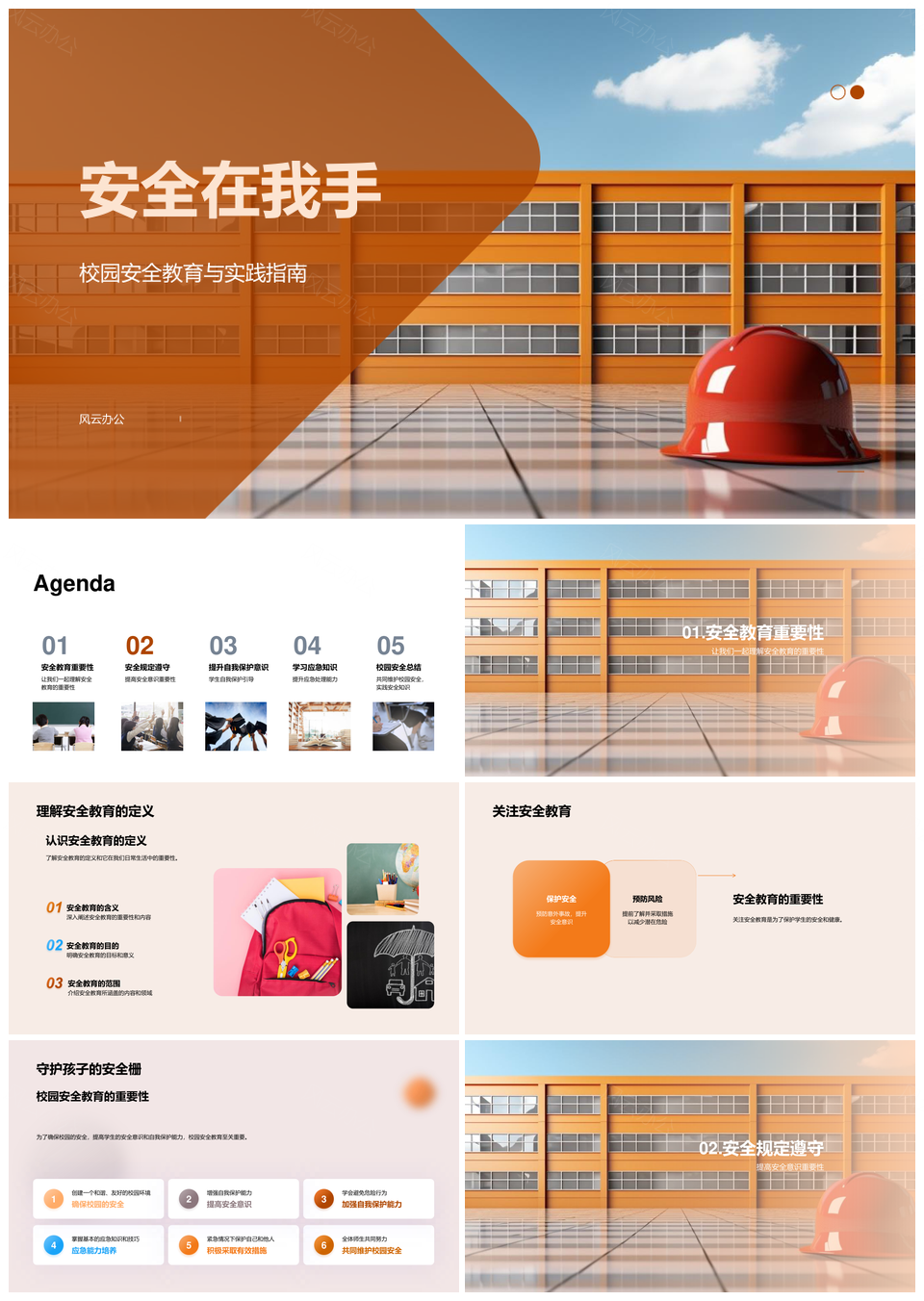 风云办公提供的掌握安全知识严守校规共建平安校园PPT模板,下载格式为pptx,一共23页,作品中文字及图均可以修改和编辑,图片更改请在作品中右键图片并更换,文字修改请直接点击文字进行修改。