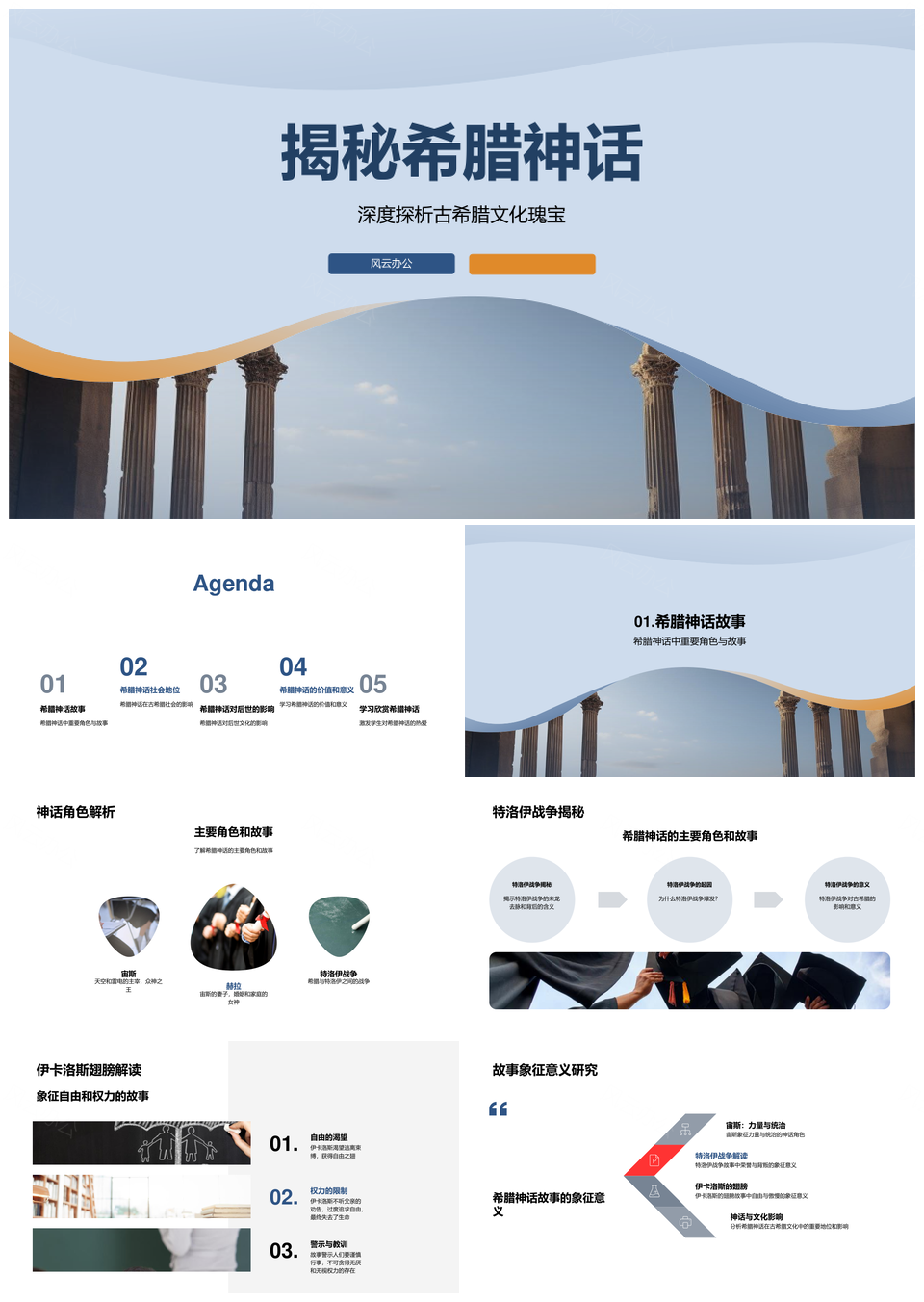 这是一张古希腊神话宙斯赫拉特洛伊战争伊卡洛斯象征PPT模板,包含古希腊神话、宙斯、赫拉、特洛伊战争、伊卡洛斯、象征等主题内容,也可用作古希腊神话宙斯赫拉、宙斯赫拉特洛伊战争、赫拉特洛伊战争伊卡洛斯、特洛伊战争伊卡洛斯象征、古希腊神话宙斯、古希腊神话赫拉、宙斯赫拉特洛伊、赫拉特洛伊战争、特洛伊战争伊卡洛斯、战争伊卡洛斯象征、古希腊神话、宙斯赫拉、特洛伊战争、伊卡洛斯象征、赫拉特洛伊等PPT场景使用。 风云办公提供的古希腊神话宙斯赫拉特洛伊战争伊卡洛斯象征PPT模板,下载格式为pptx,一共28页,作品中文字及图均可以修改和编辑,图片更改请在作品中右键图片并更换,文字修改请直接点击文字进行修改。