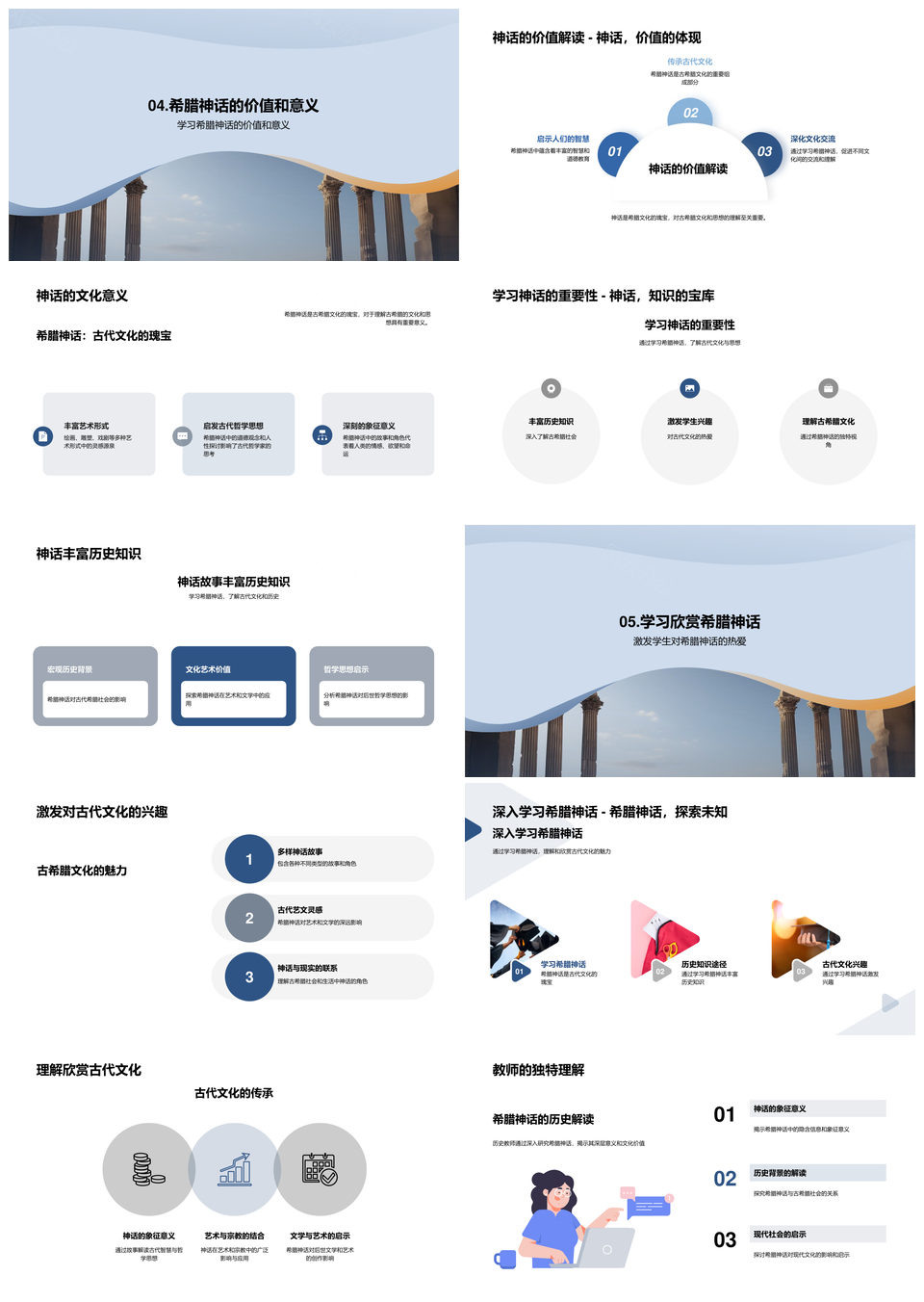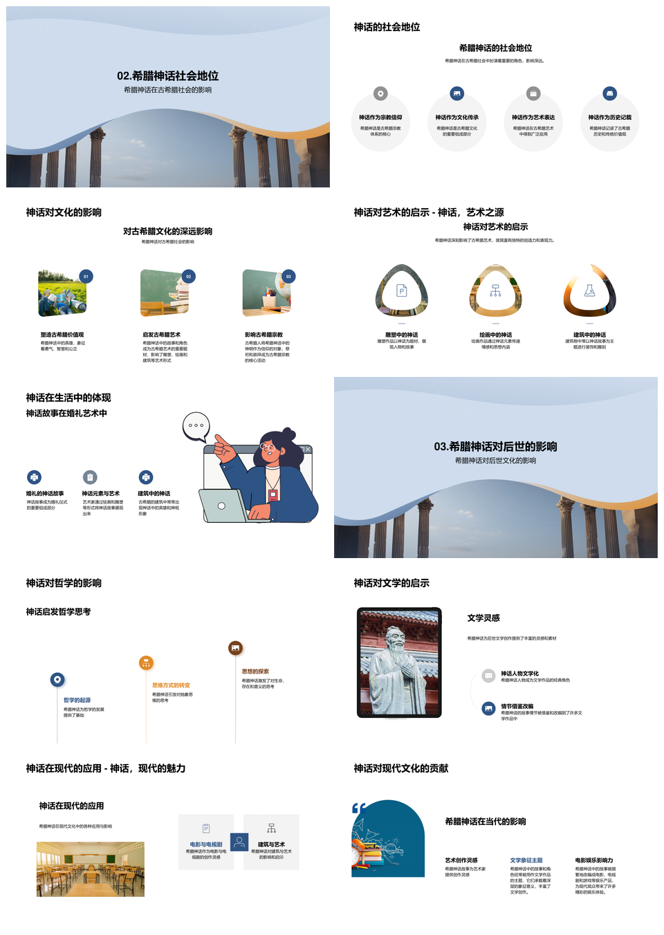 古希腊神话历史起源发展神祇雕像人性文化PPT模板