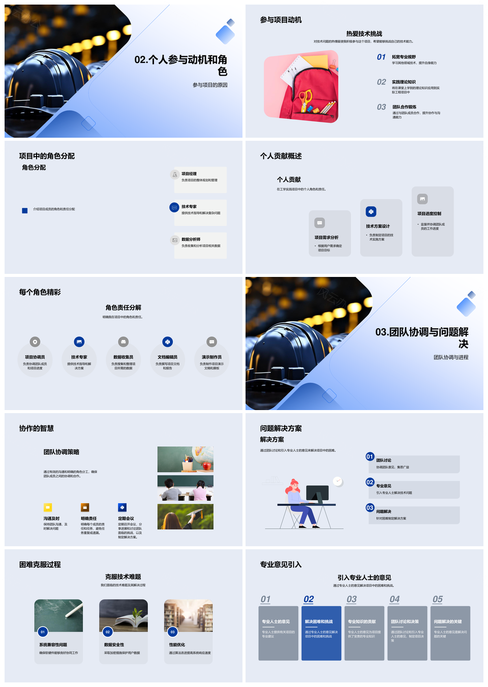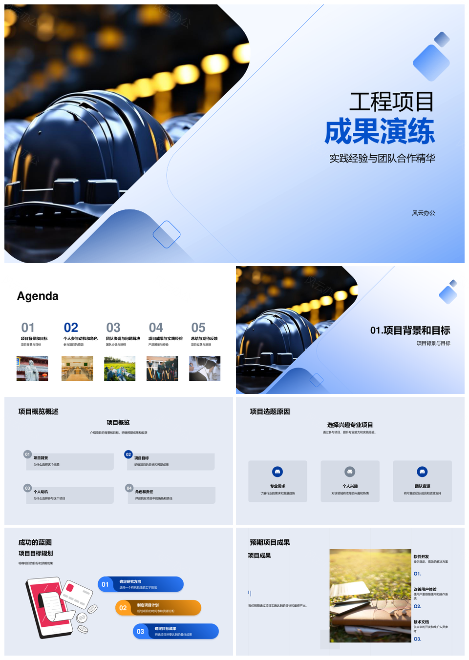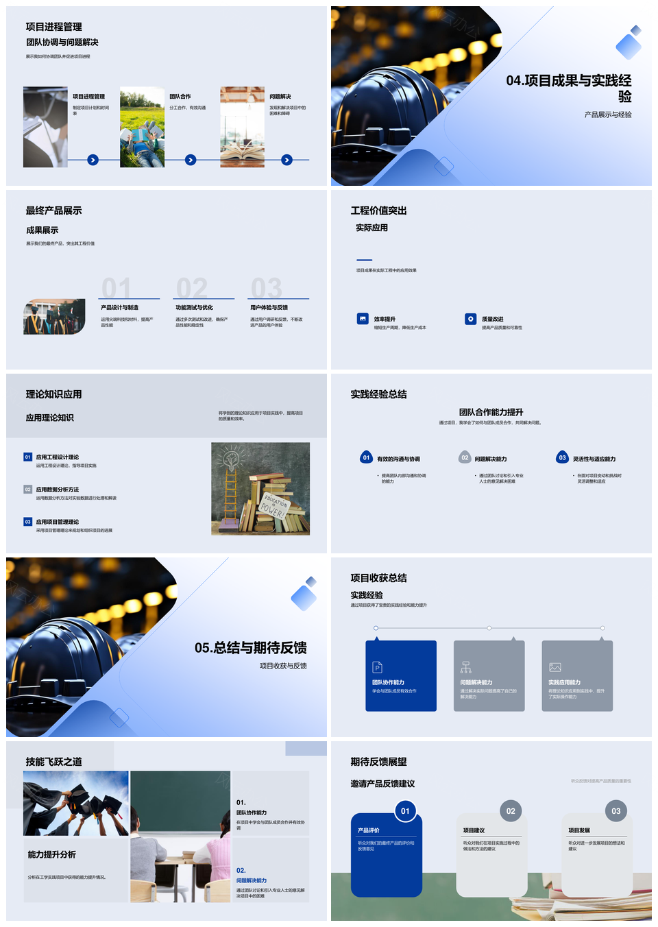 工程项目毕业答辩团队协作技术挑战实践蓝图PPT模板推荐