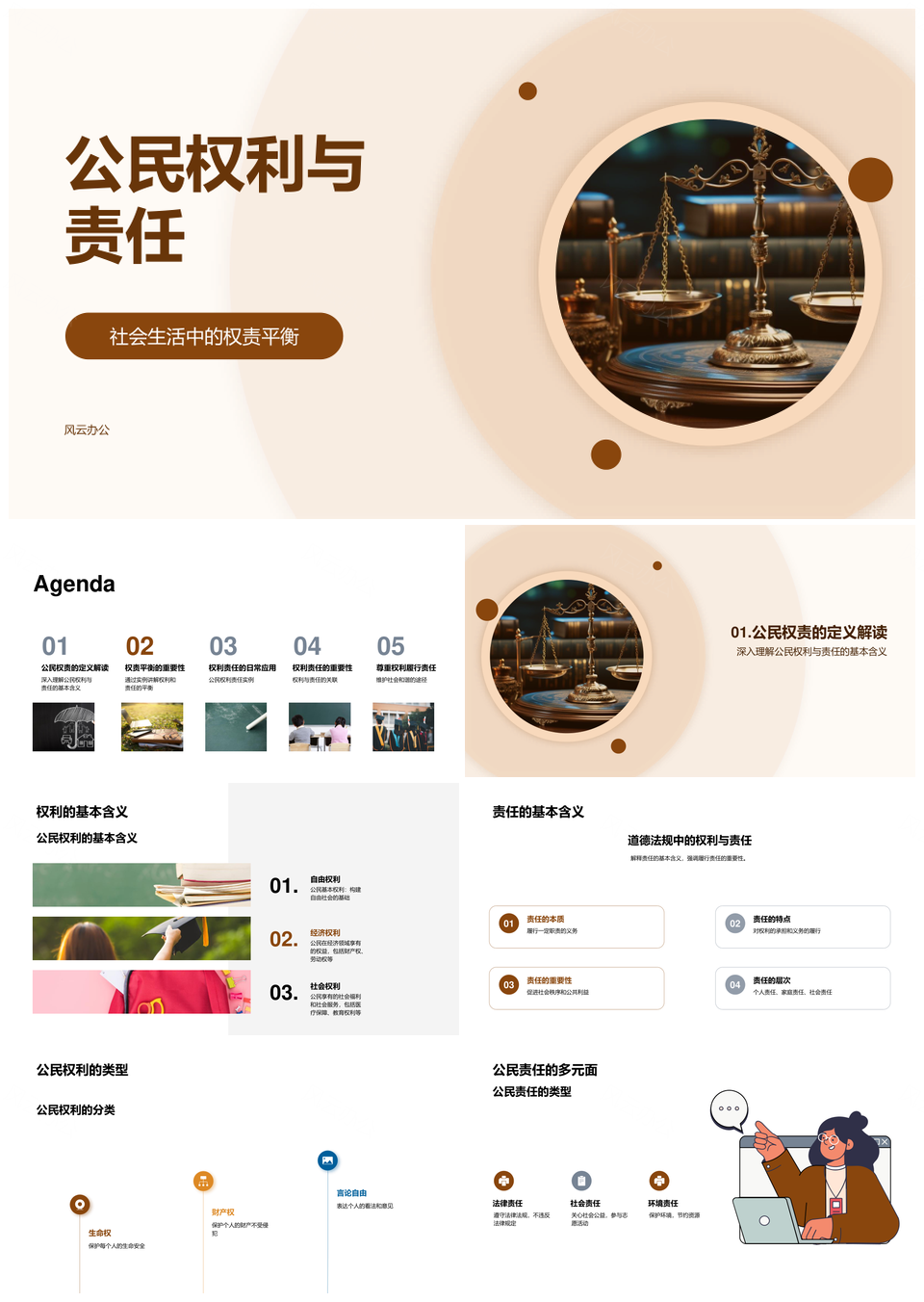 风云办公提供的公民权责天平道德教育共建社会和谐PPT模板,下载格式为pptx,一共33页,作品中文字及图均可以修改和编辑,图片更改请在作品中右键图片并更换,文字修改请直接点击文字进行修改。