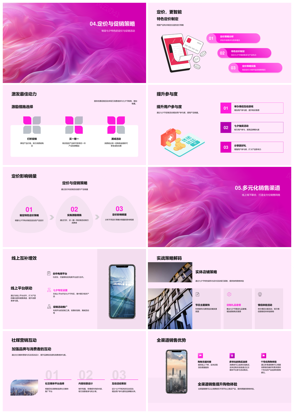 七夕情感营销产品策略促销定价包装定位分析PPT模板推荐
