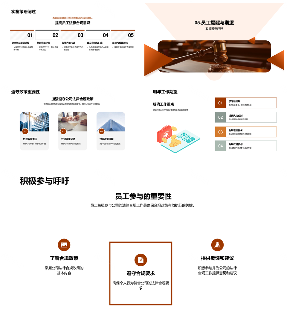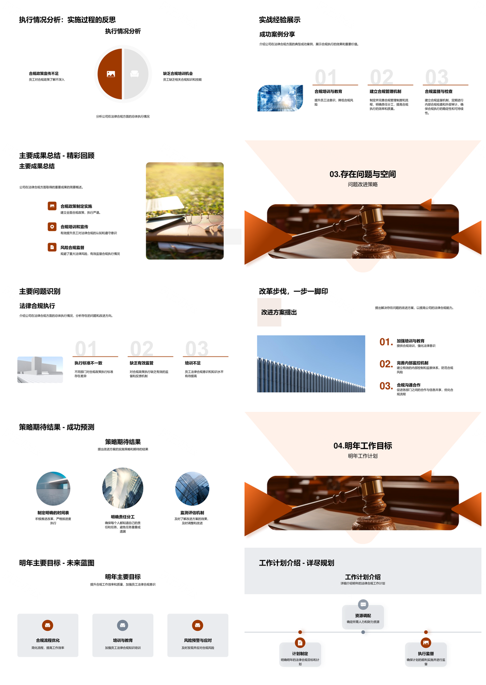 公司法律合规政策实施成果问题年度回顾PPT模板