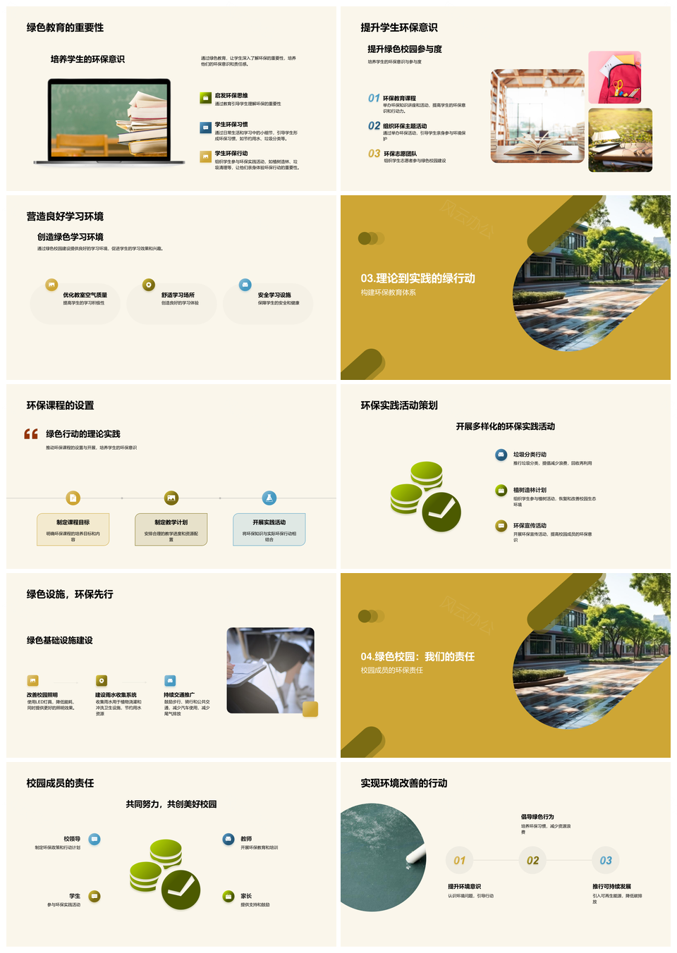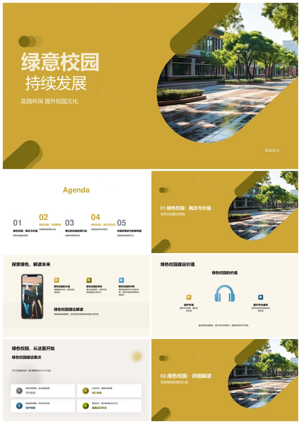风云办公提供的绿意校园绿色教育实践持续发展PPT模板,下载格式为pptx,一共23页,作品中文字及图均可以修改和编辑,图片更改请在作品中右键图片并更换,文字修改请直接点击文字进行修改。