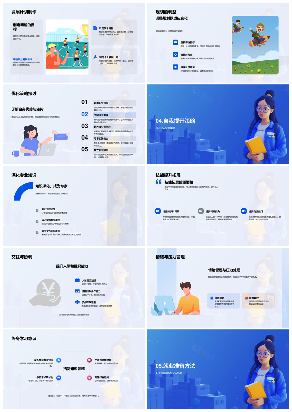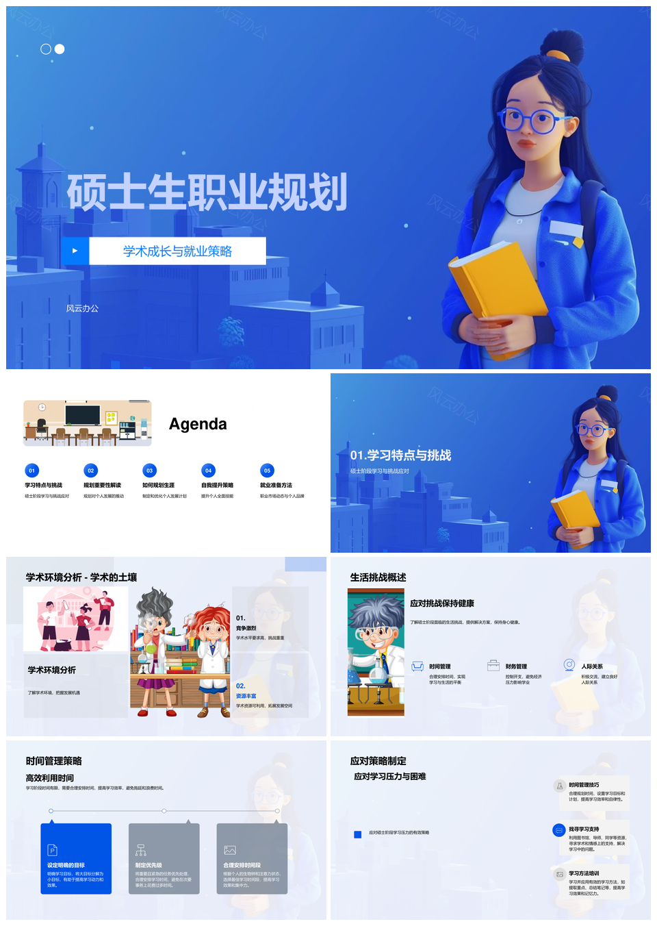 风云办公提供的硕士生职业规划学术成长与就业策略PPT模板,下载格式为pptx,一共33页,作品中文字及图均可以修改和编辑,图片更改请在作品中右键图片并更换,文字修改请直接点击文字进行修改。
