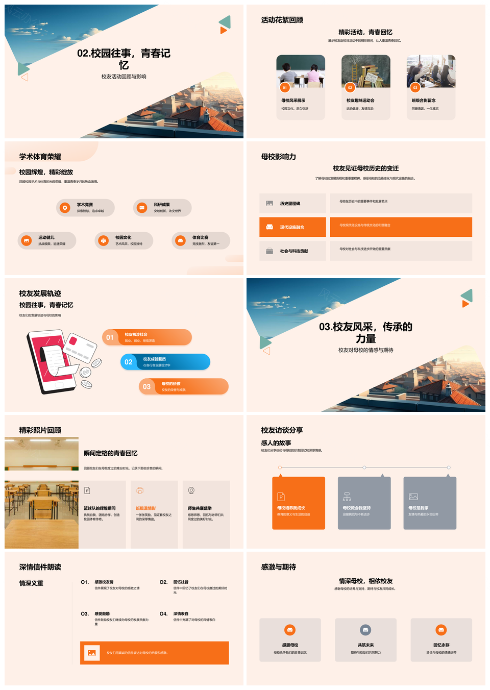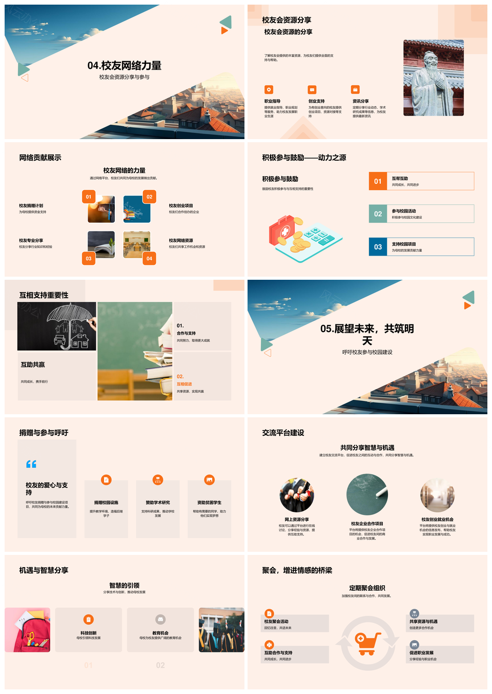 这是一张悠扬校园岁月图影访谈校友捐赠平台建筑PPT模板,包含悠扬、校园、岁月、图影、访谈、校友、捐赠、平台、建筑等主题内容,也可用作悠扬校园岁月图影访谈校友捐赠平台、校园岁月图影访谈校友捐赠平台建筑、悠扬校园岁月图影访谈、校园岁月图影访谈校友、岁月图影访谈校友捐赠、图影访谈校友捐赠平台、访谈校友捐赠平台建筑、校友捐赠平台建筑、悠扬校园岁月、校园岁月图影、岁月图影访谈、图影访谈校友、访谈校友捐赠、校友捐赠平台、捐赠平台建筑等PPT场景使用。 风云办公提供的悠扬校园岁月图影访谈校友捐赠平台建筑PPT模板,下载格式为pptx,一共28页,作品中文字及图均可以修改和编辑,图片更改请在作品中右键图片并更换,文字修改请直接点击文字进行修改。